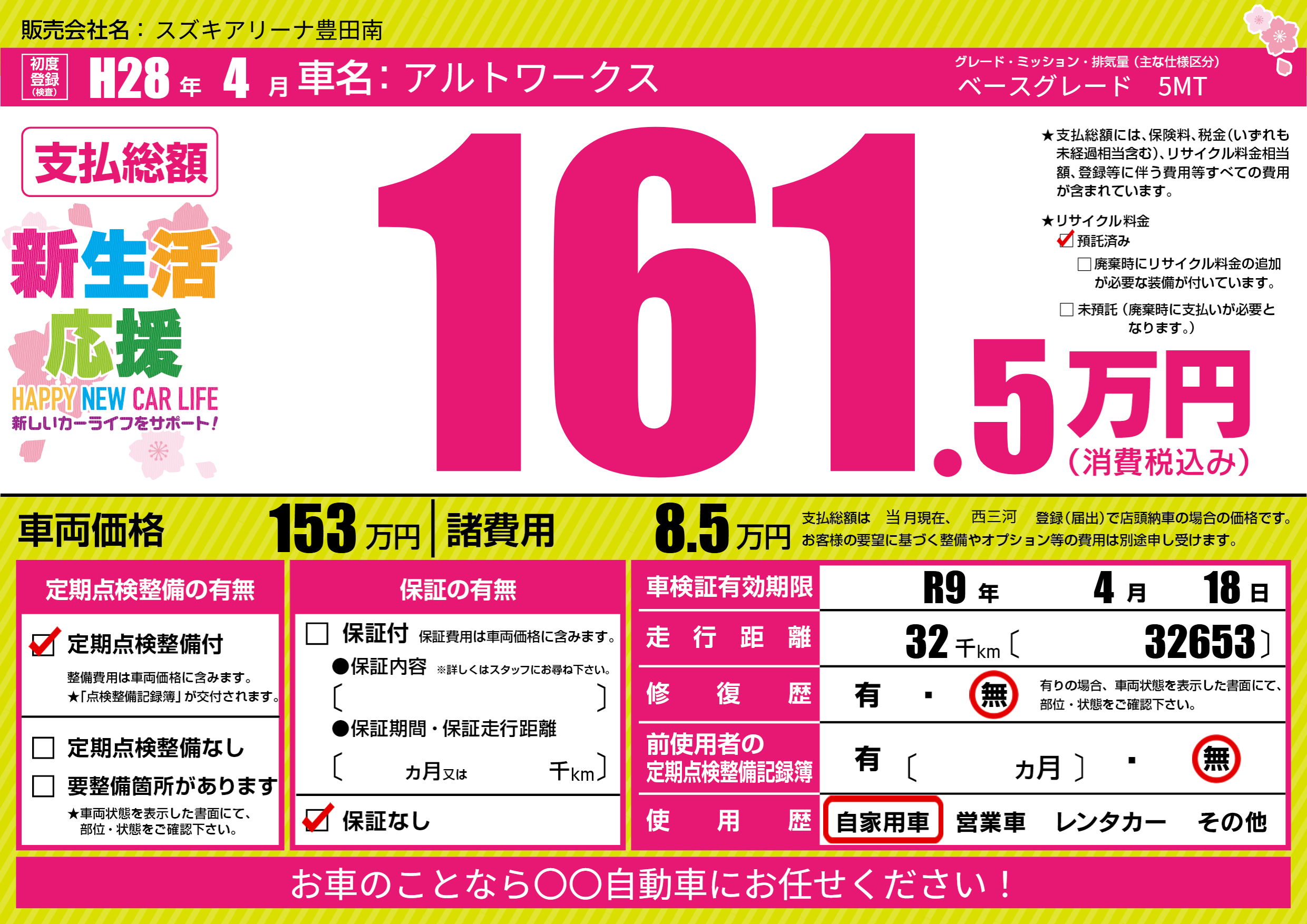 車検制限 R9年 4月 18日