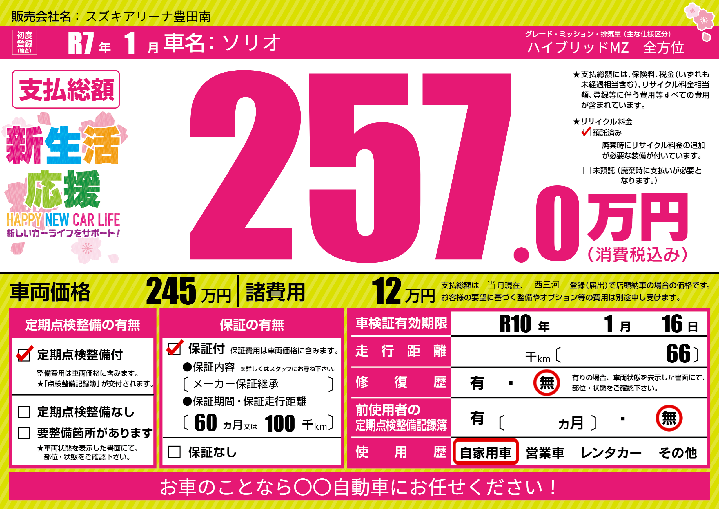 | 車名 | ソリオ | グレード ミッション 排気量 |