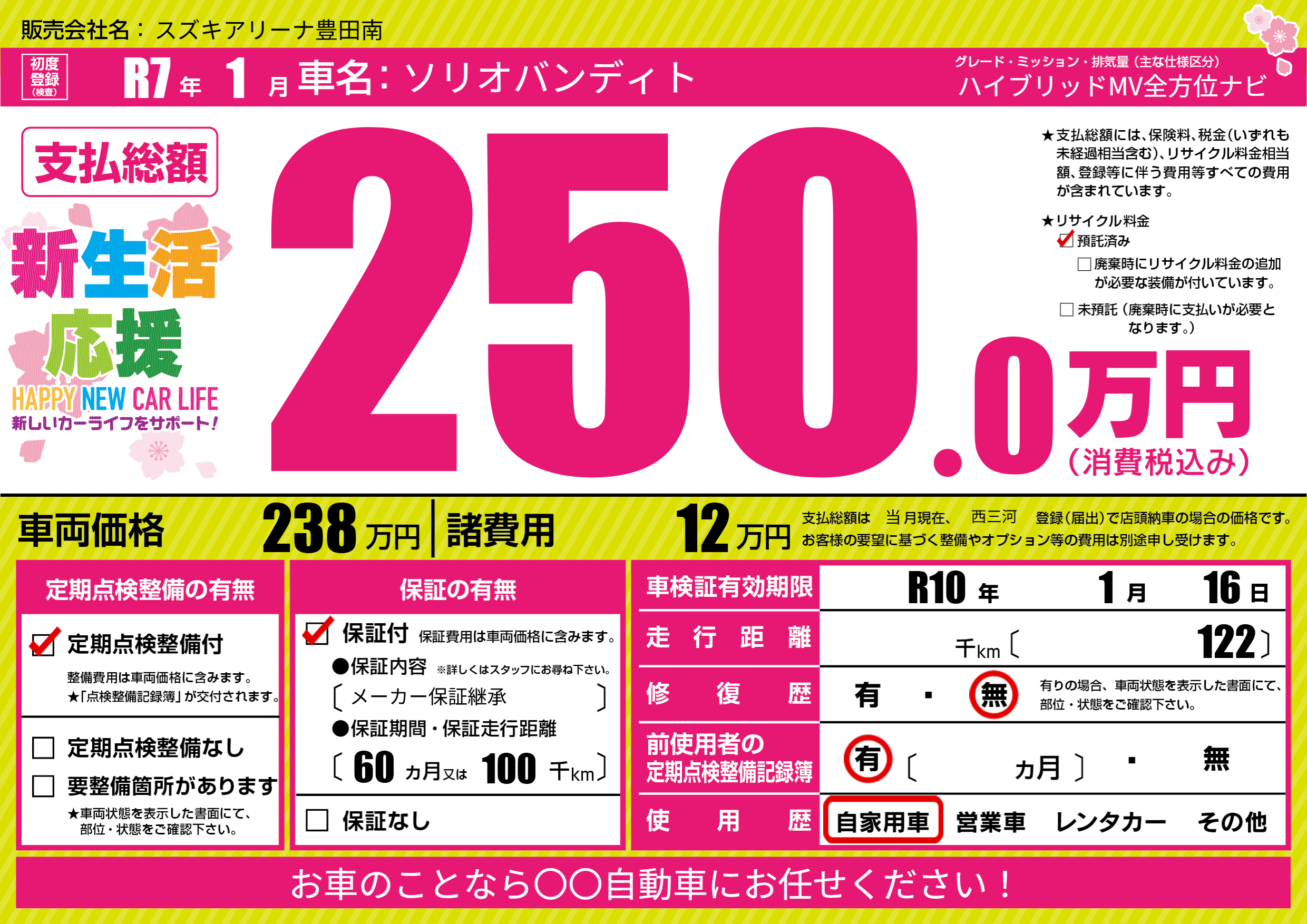 なし | 車検制限 | R10年1月16月 |