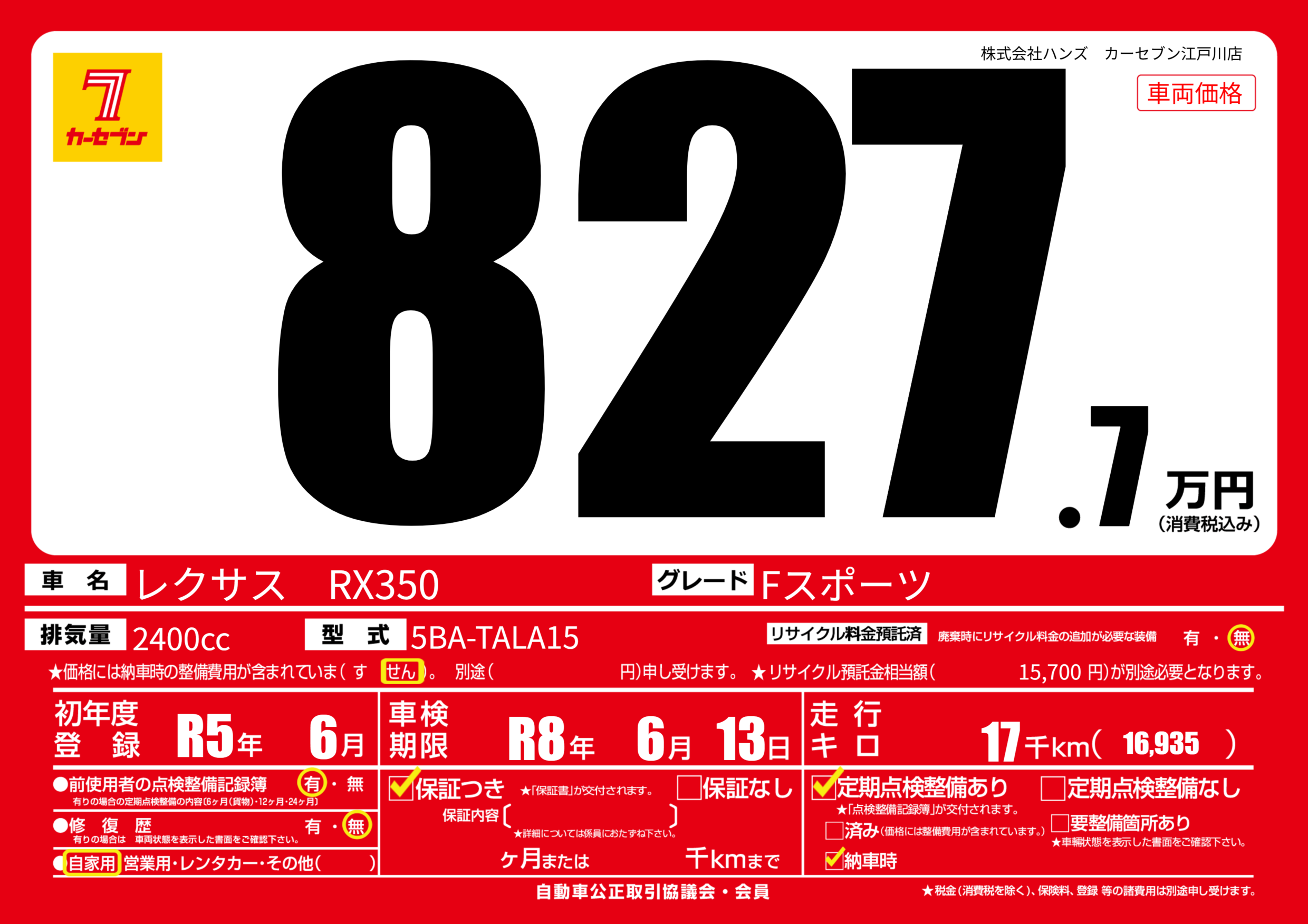 なし | 車検制限 | R8年6月13月 |