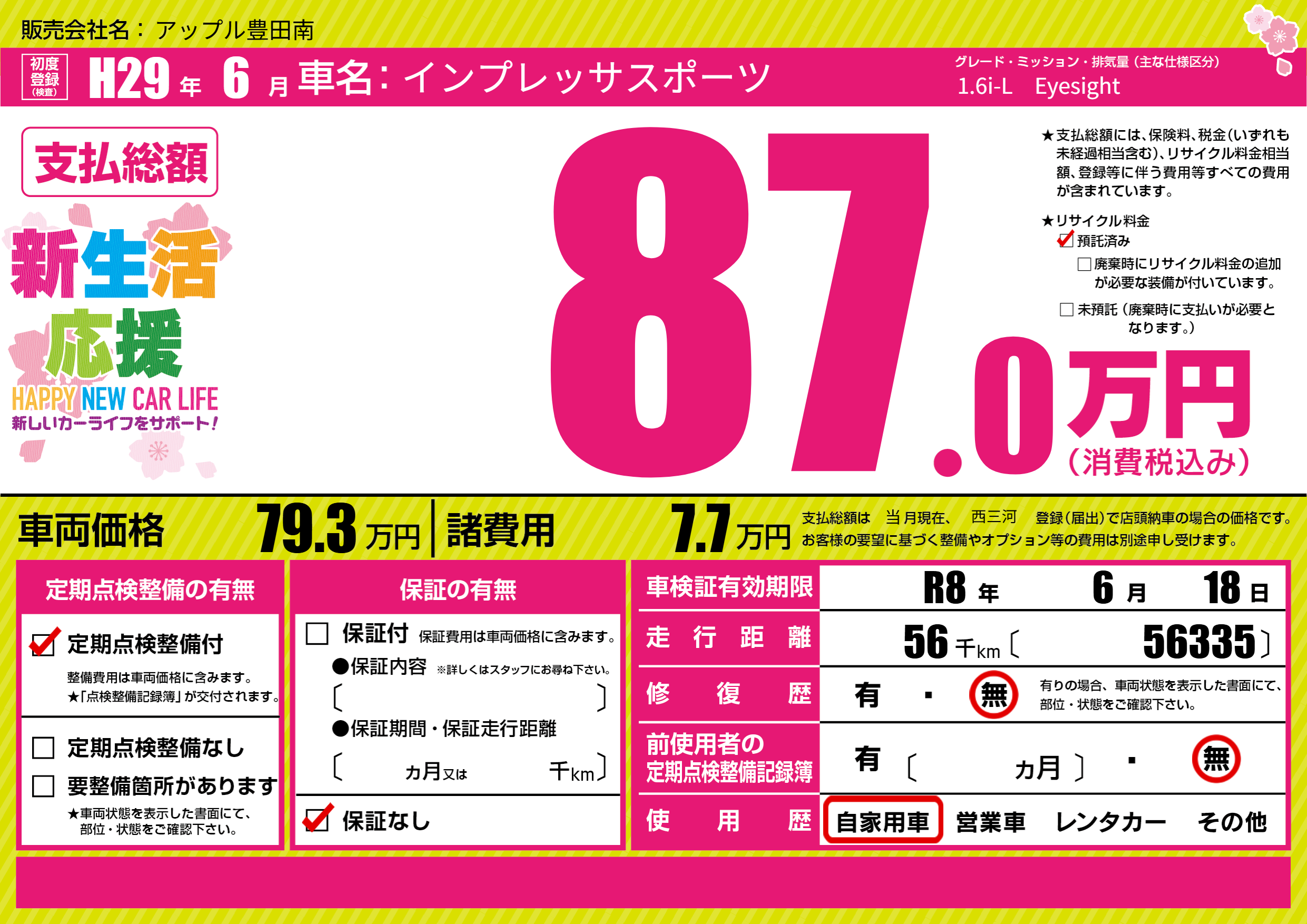 なし | 車検制限 | R8年6月18月 |