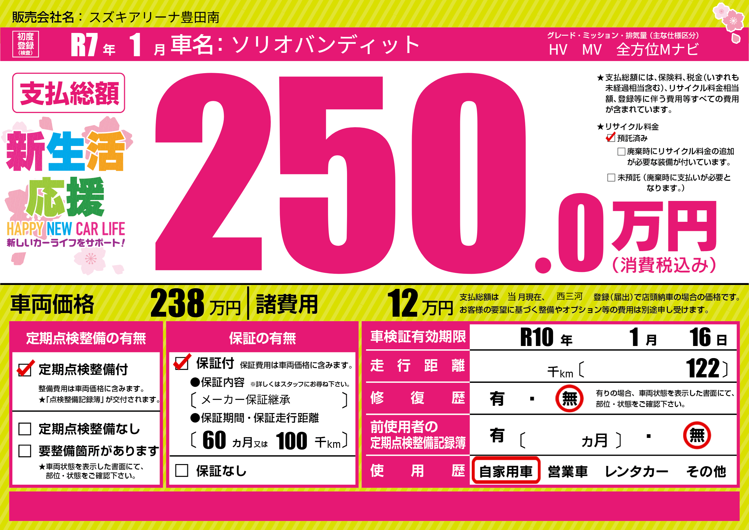 | 車名 | ソリオバンディット | グレード ミッション 排気量 |