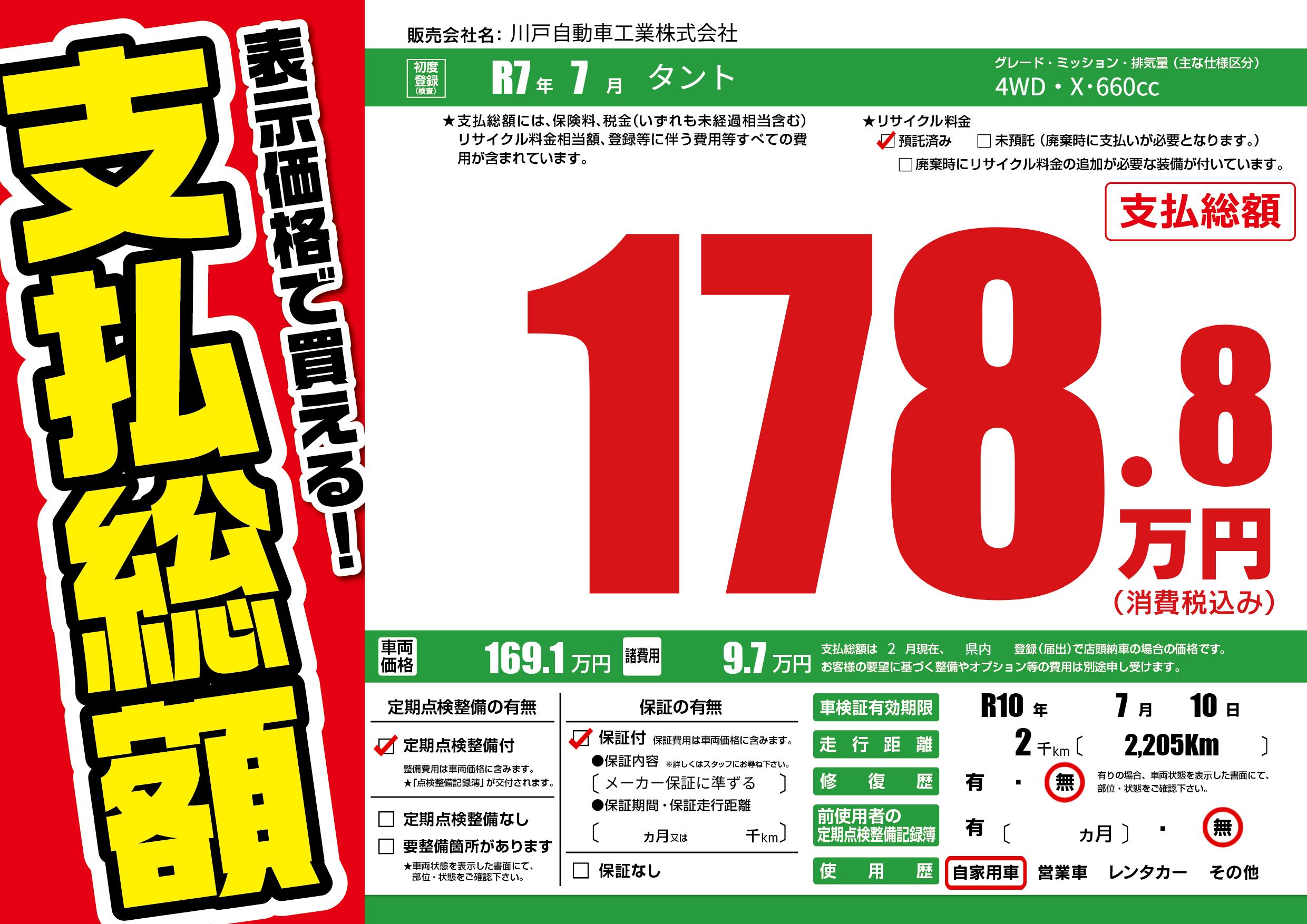 なし | 車検制限 | R10年7月10月 |