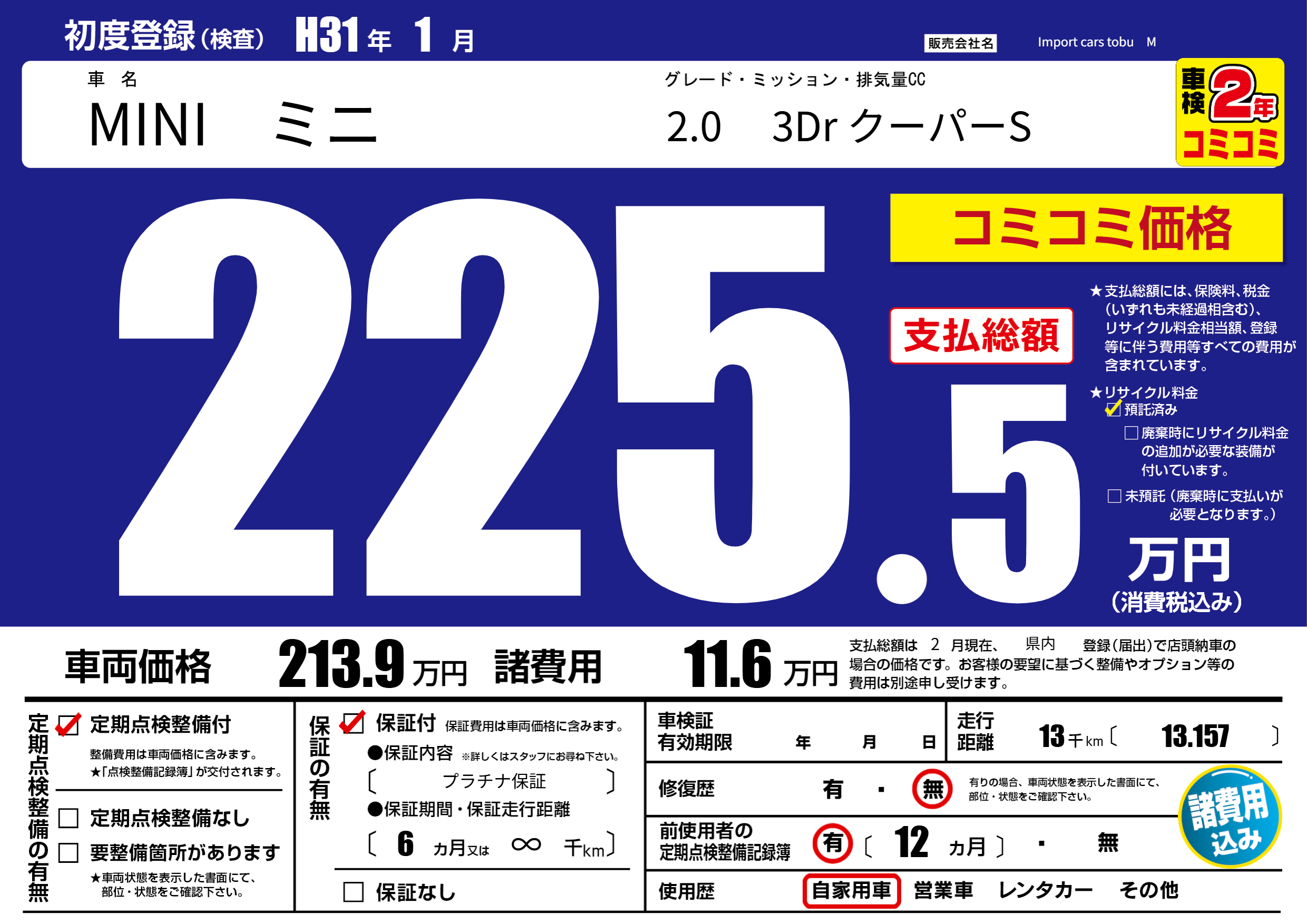 保証付き 保証内容( プラチナ保証) 6ヶ月または(∞)千kmまで |
