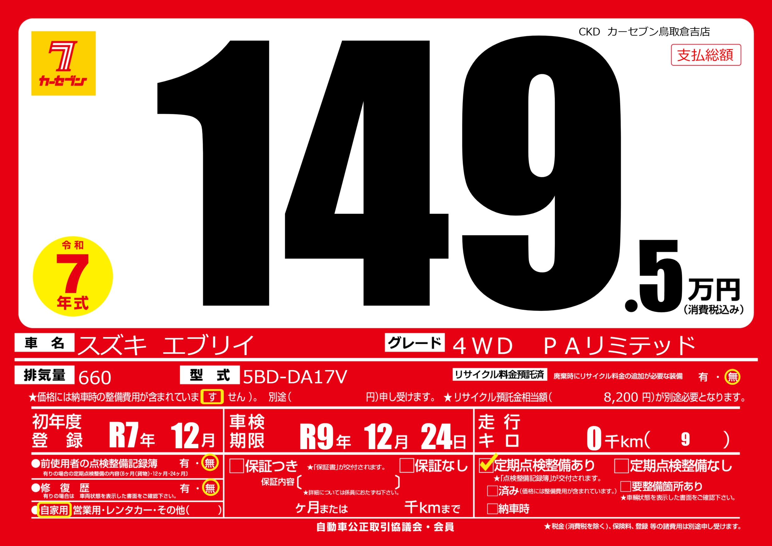| 車検制限 | R9年 12月 24日 | ||