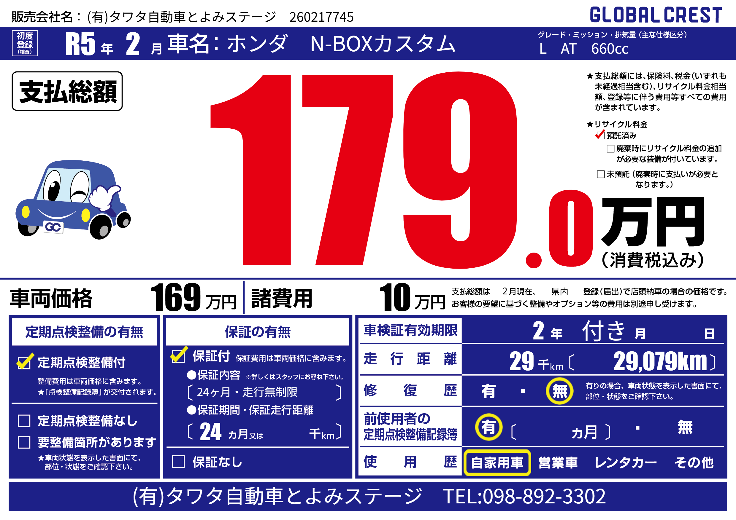 | 車名 | ホンダ N-BOXカスタム | グレード ミッション 排気量 |