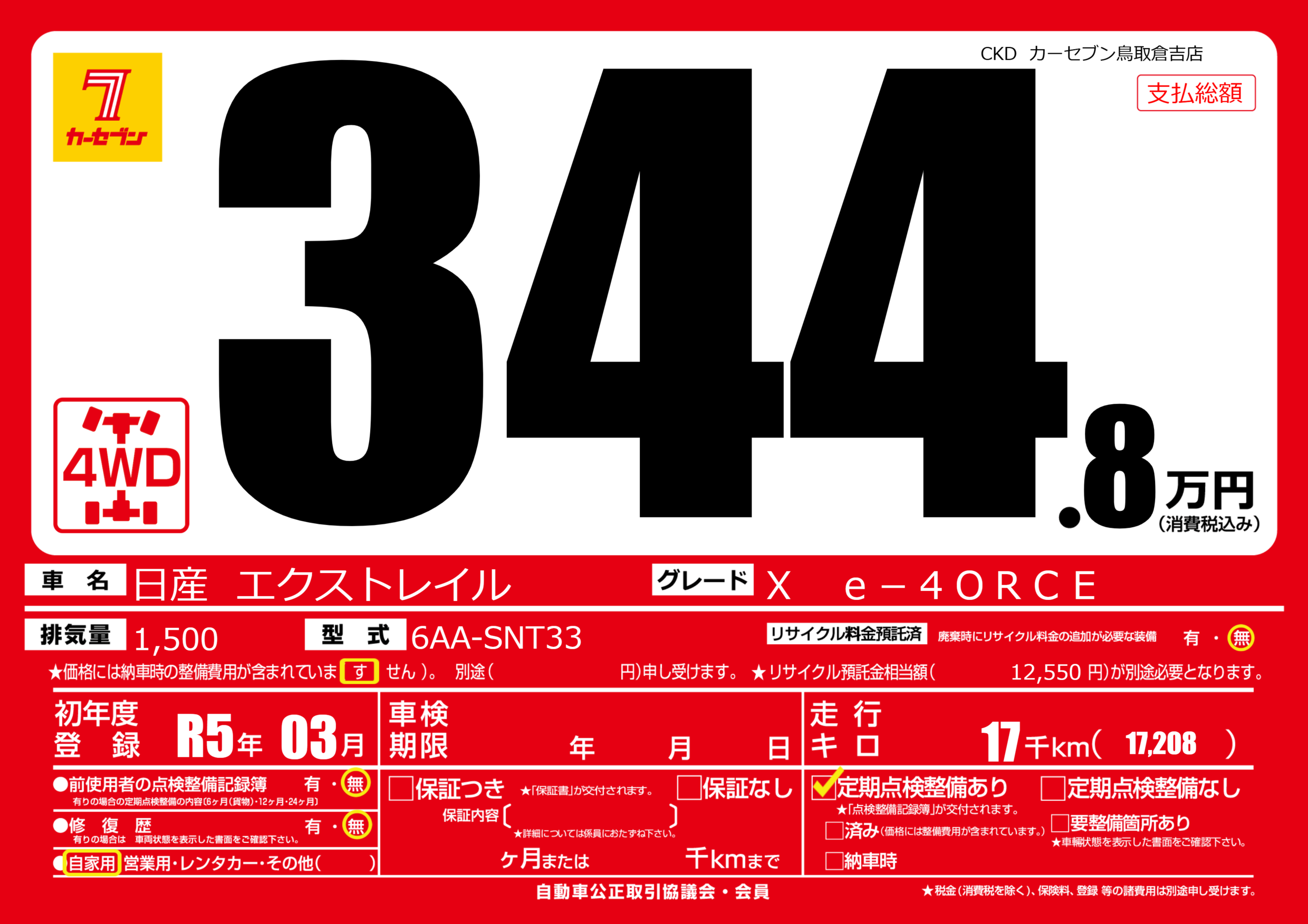 | 走行キロ | 1.7万km | 初年度登録 | R5年03月 |