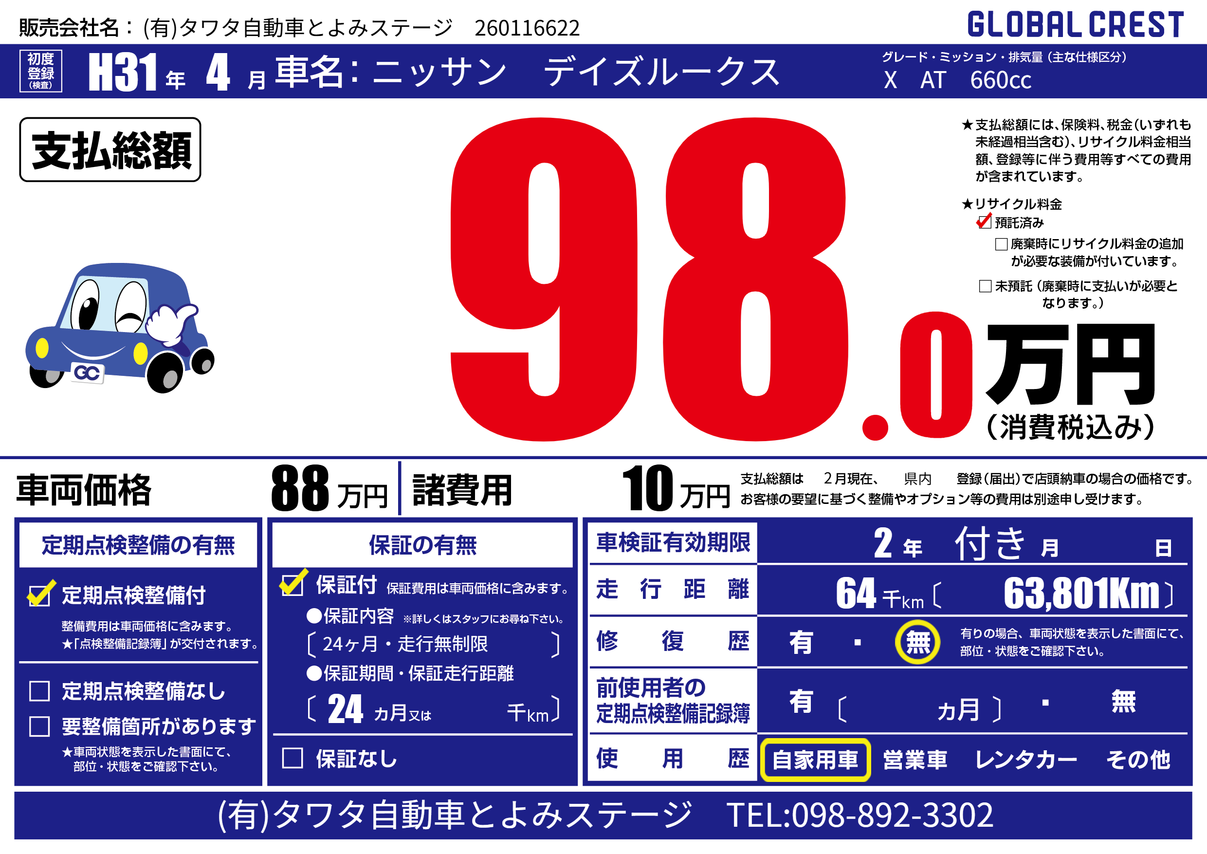 | 定期点検整備 | 定期点検整備あり | ||