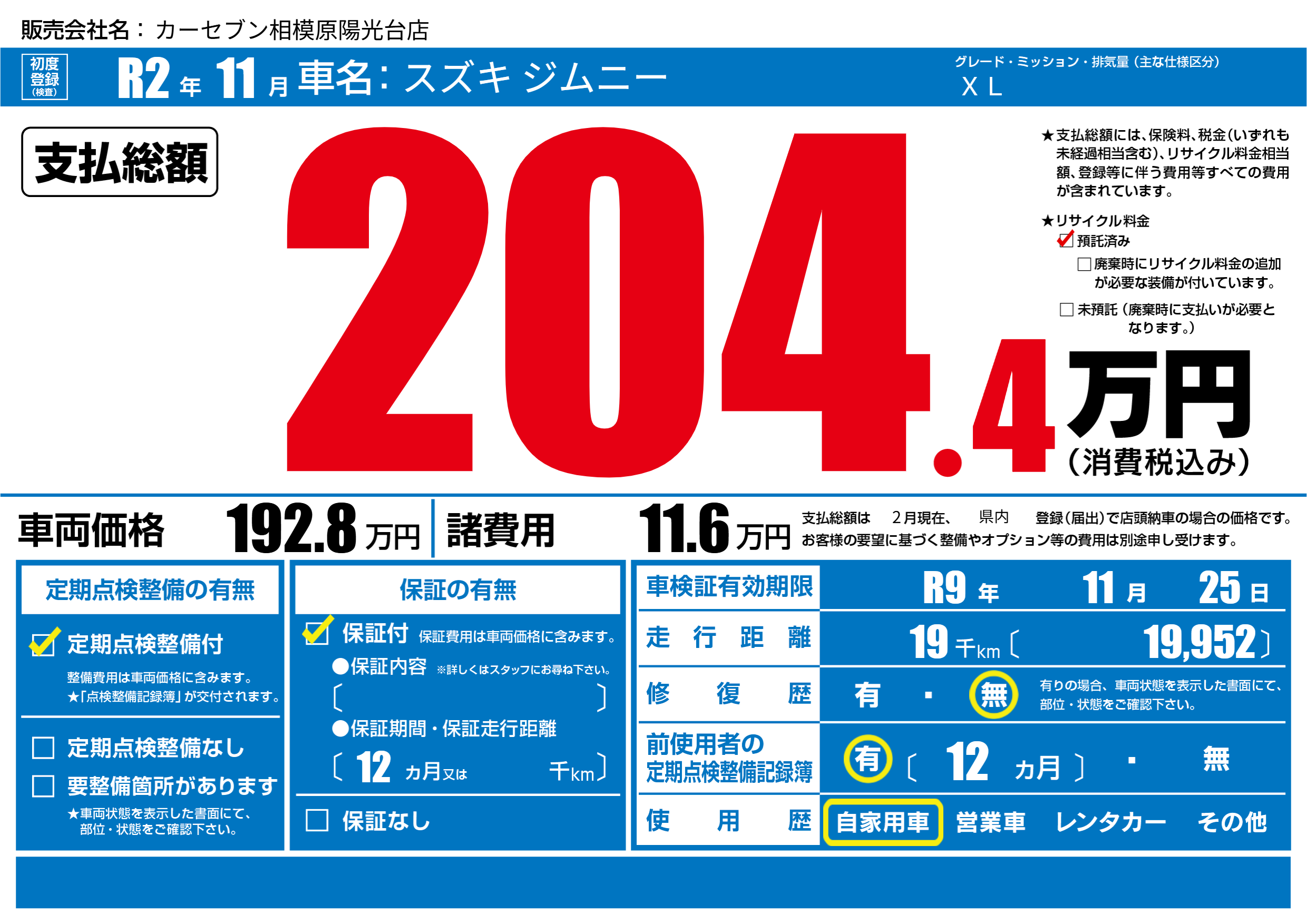 | 車名 | スズキ ジムニー | グレード ミッション 排気量 |