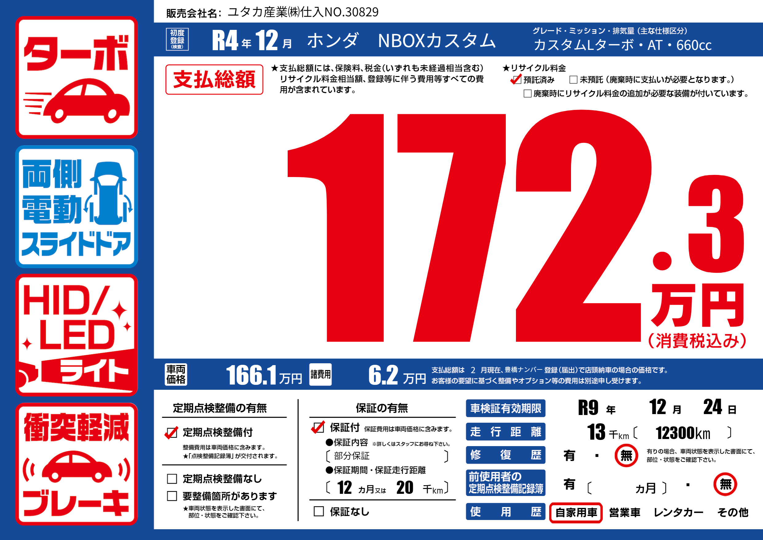 なし | 車検制限 | R9年12月24月 |