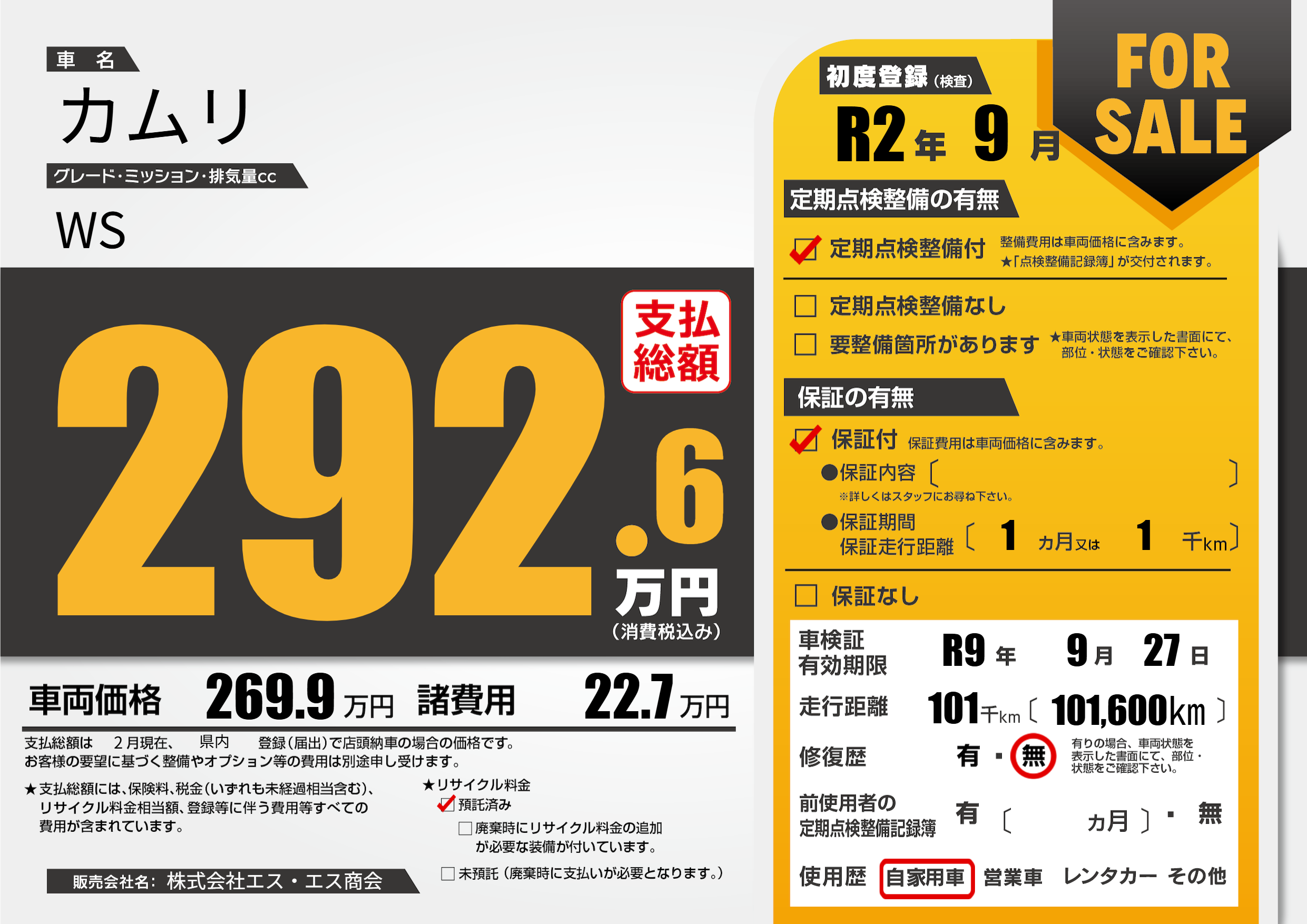 なし | 車検制限 | R9年9月27月 |