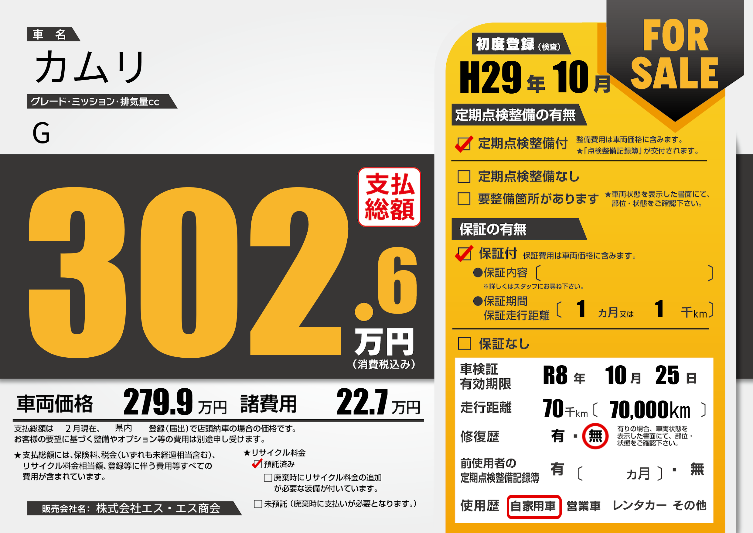 なし | 車検制限 | R8年10月25月 |