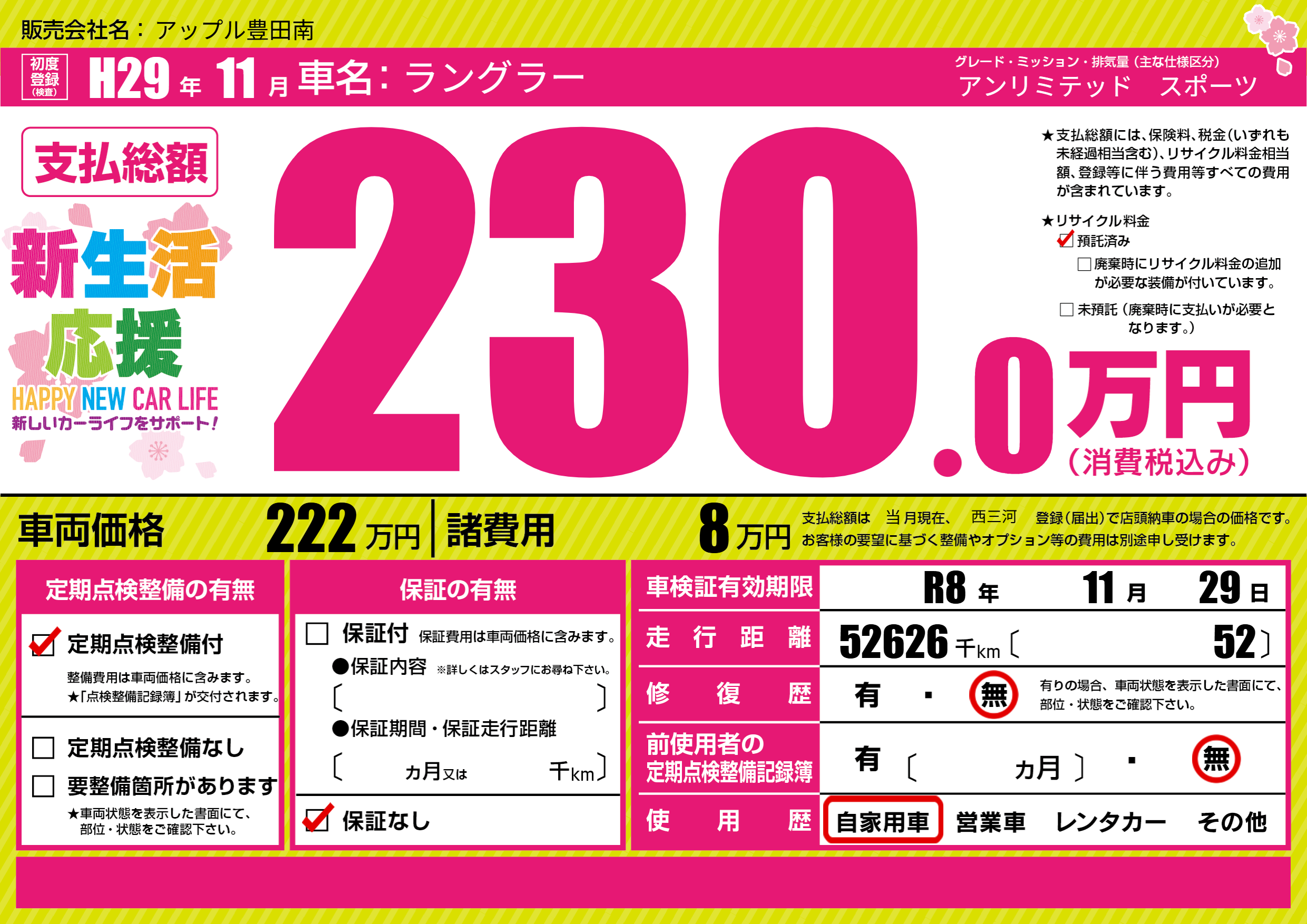 なし | 車検制限 | R8年11月29月 |