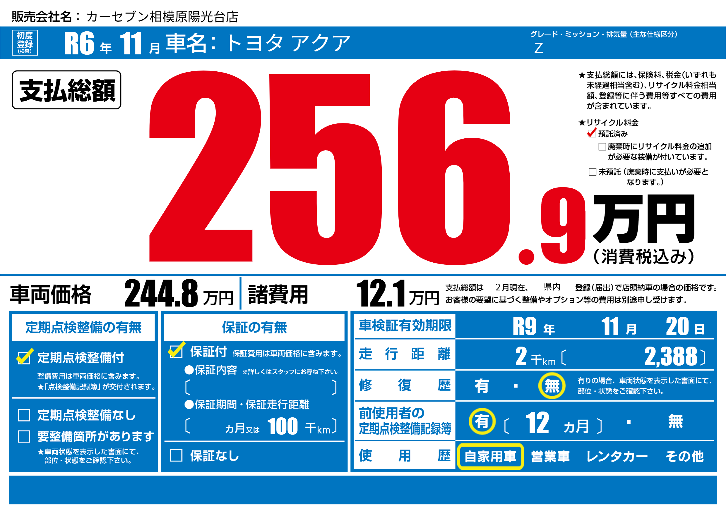 なし | 車検制限 | R9年11月20月 |