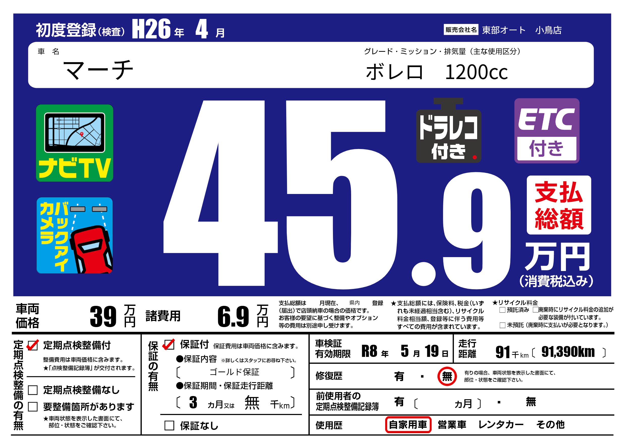 保証付き 保証内容( ゴールド保証) 3ヶ月または(無)千kmまで |