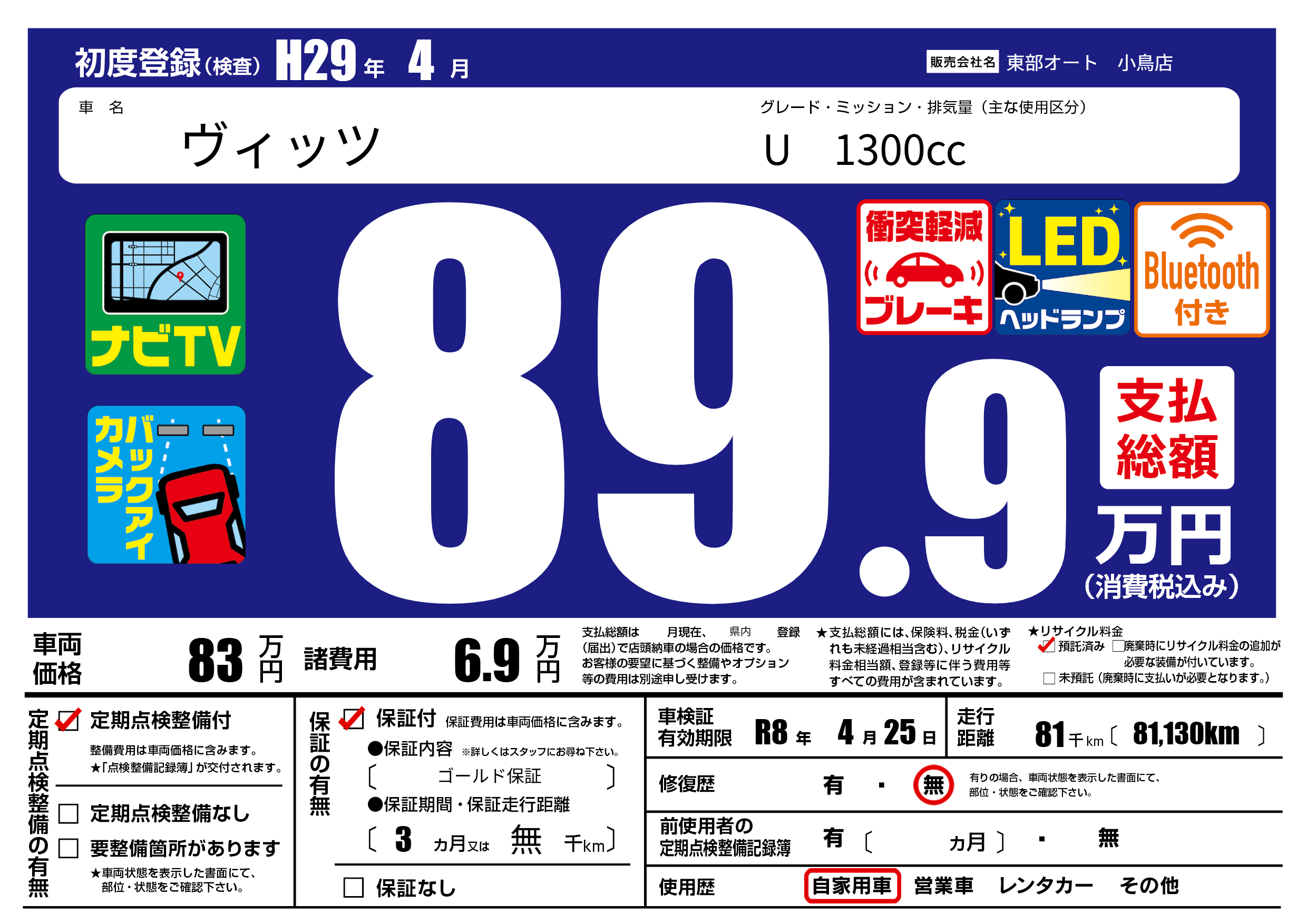 保証付き 保証内容( ゴールド保証) 3ヶ月または(無)千kmまで |