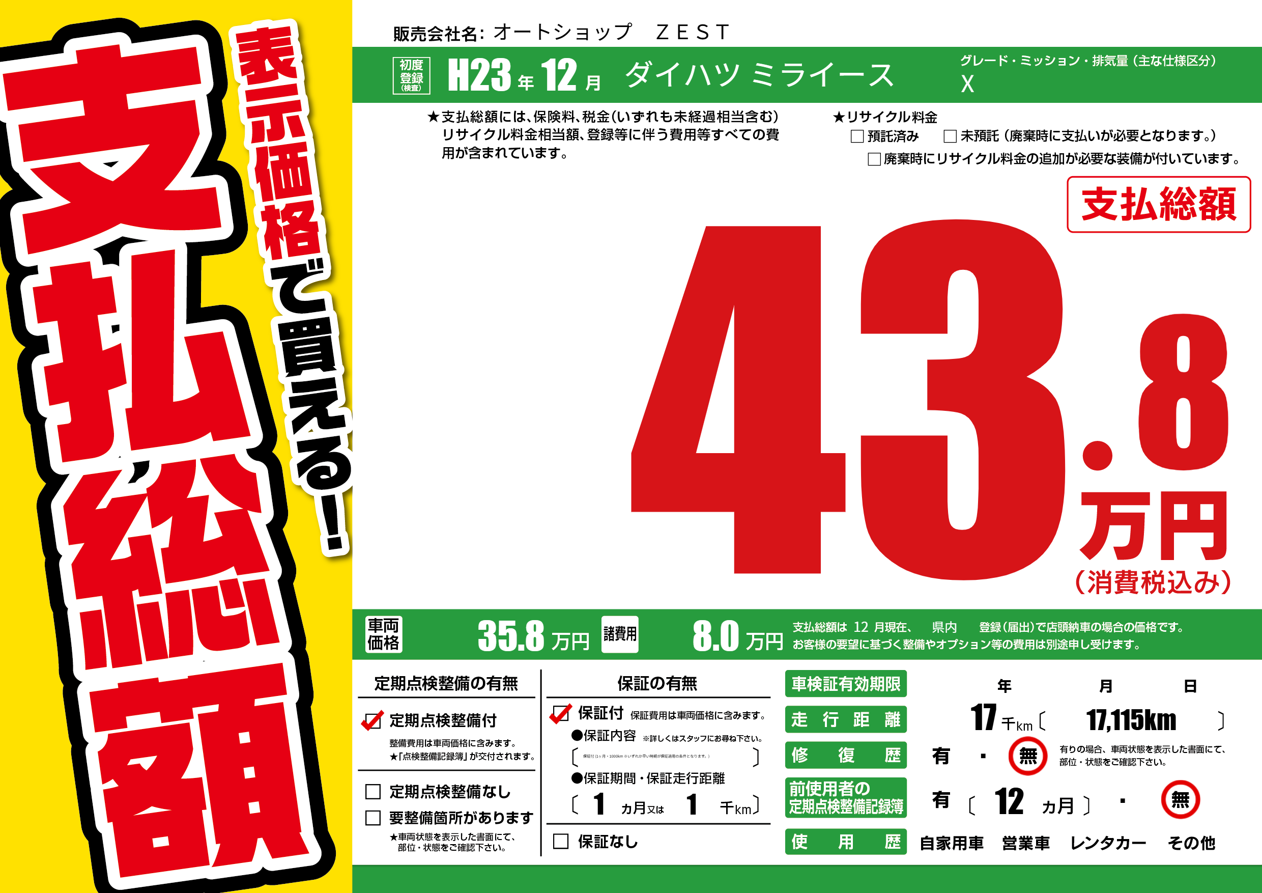 | 車検制限 | - 年 - 月 - 日 | ||