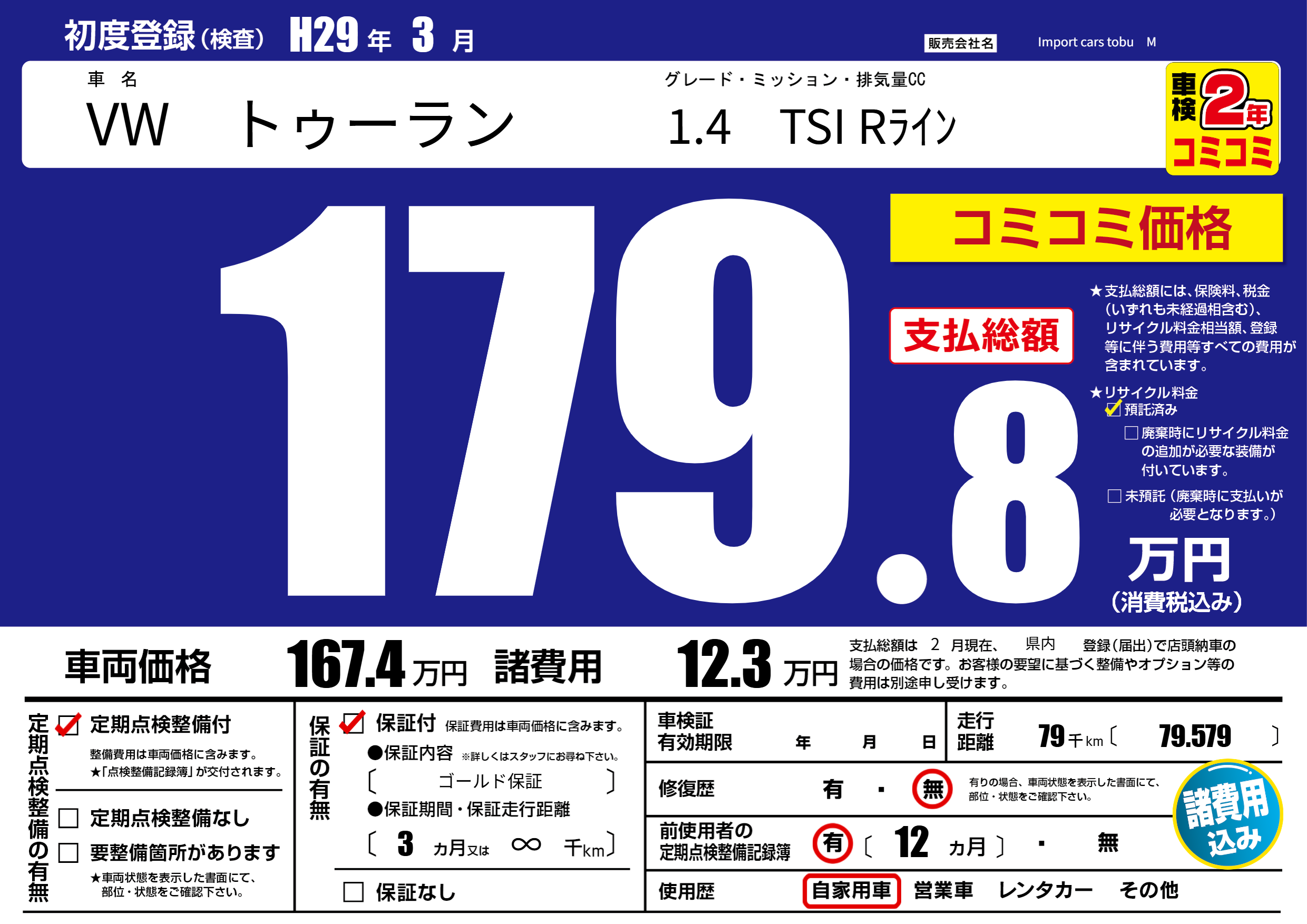 | 走行キロ | 7.9万km | ||