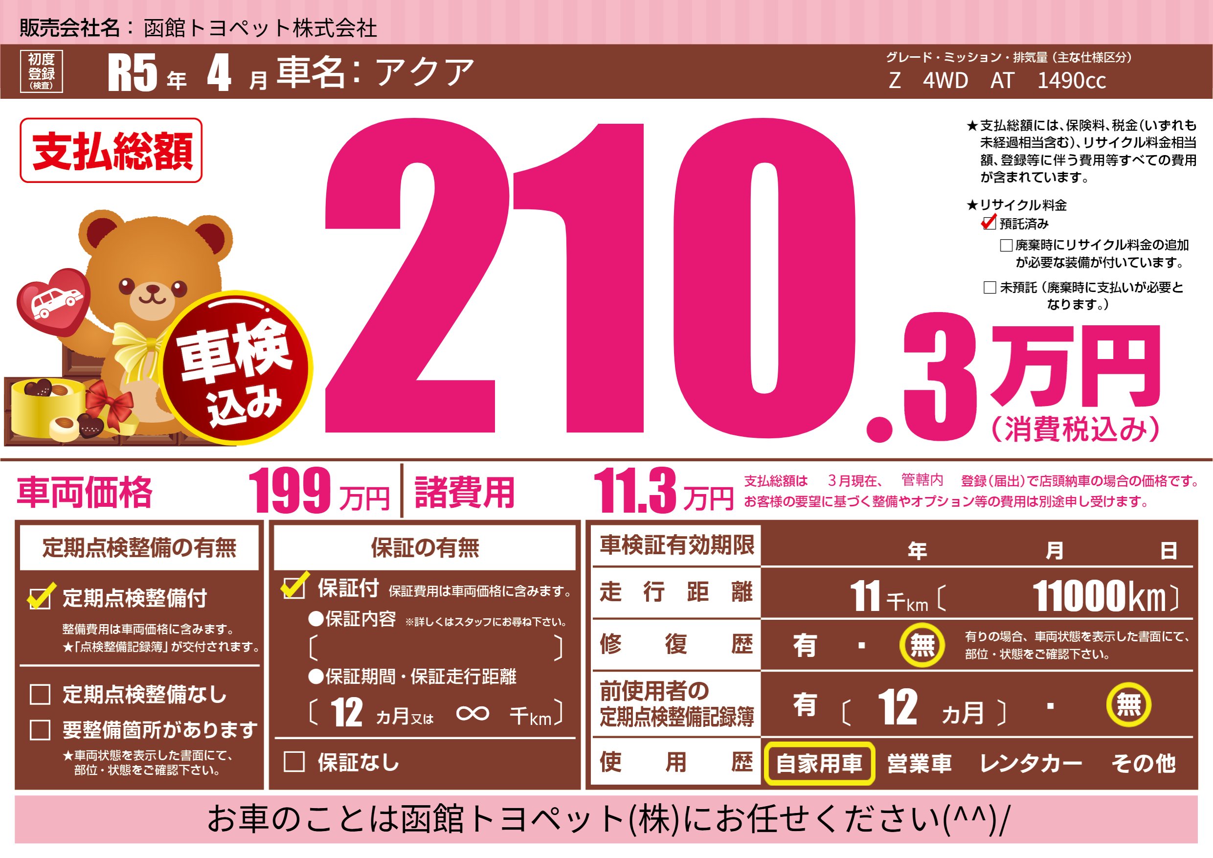 | 定期点検整備 | 定期点検整備あり | ||