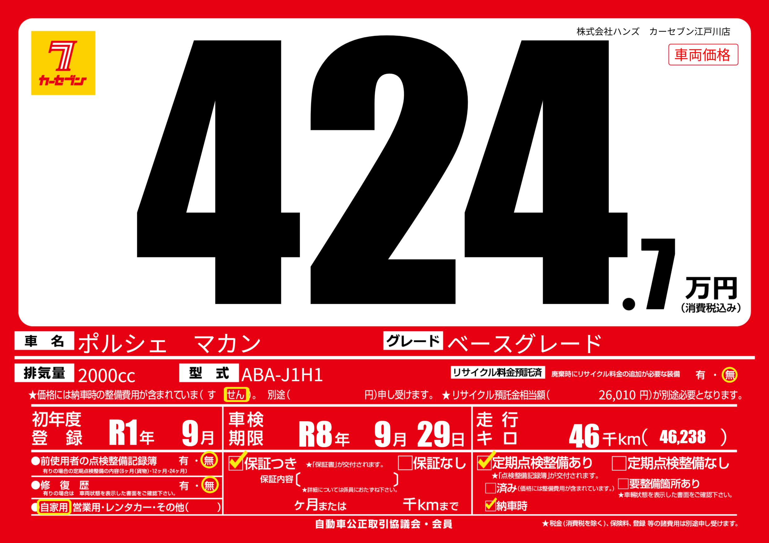 | 走行キロ | 4.6万km | ||