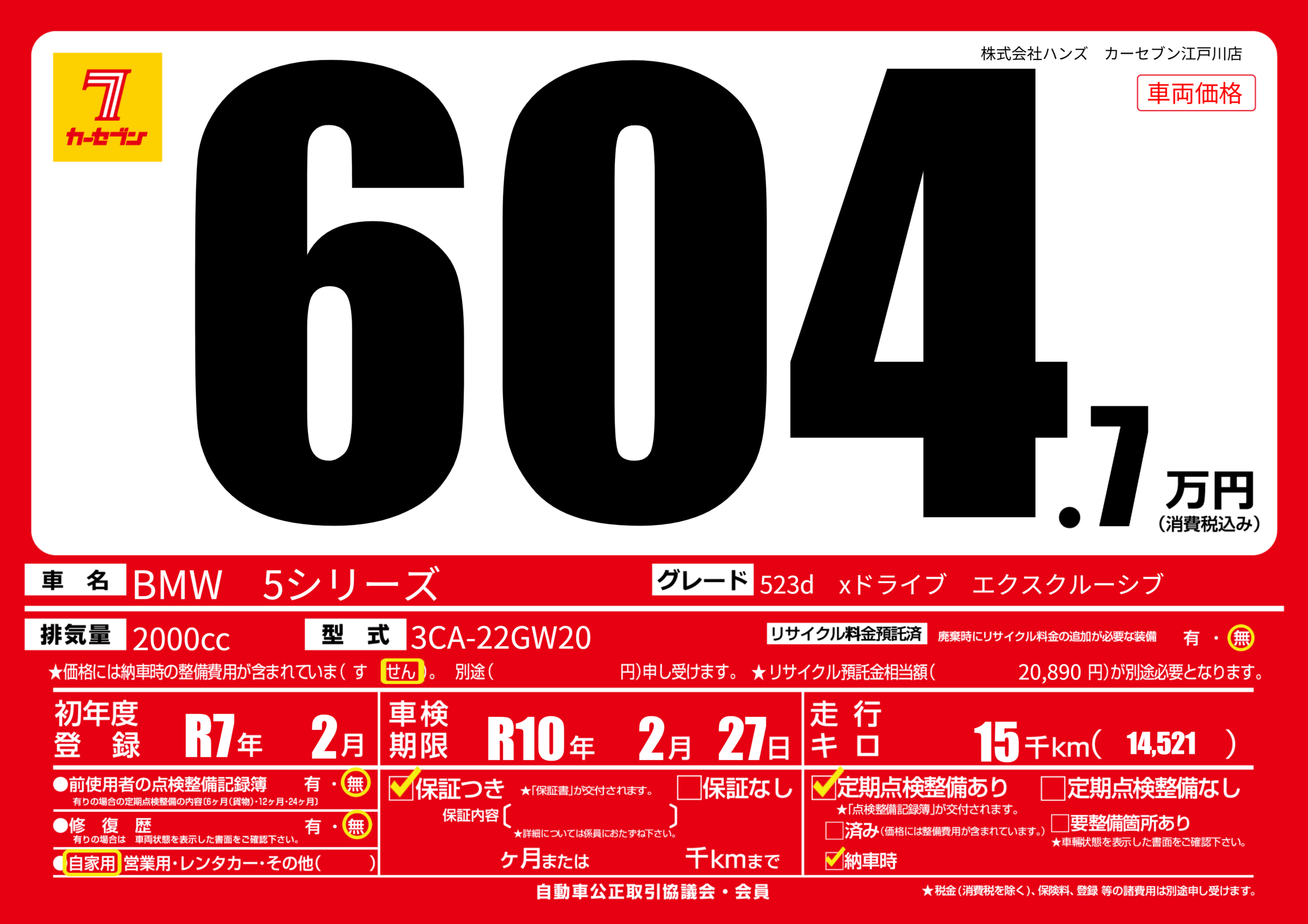 なし | 車検制限 | R10年2月27月 |