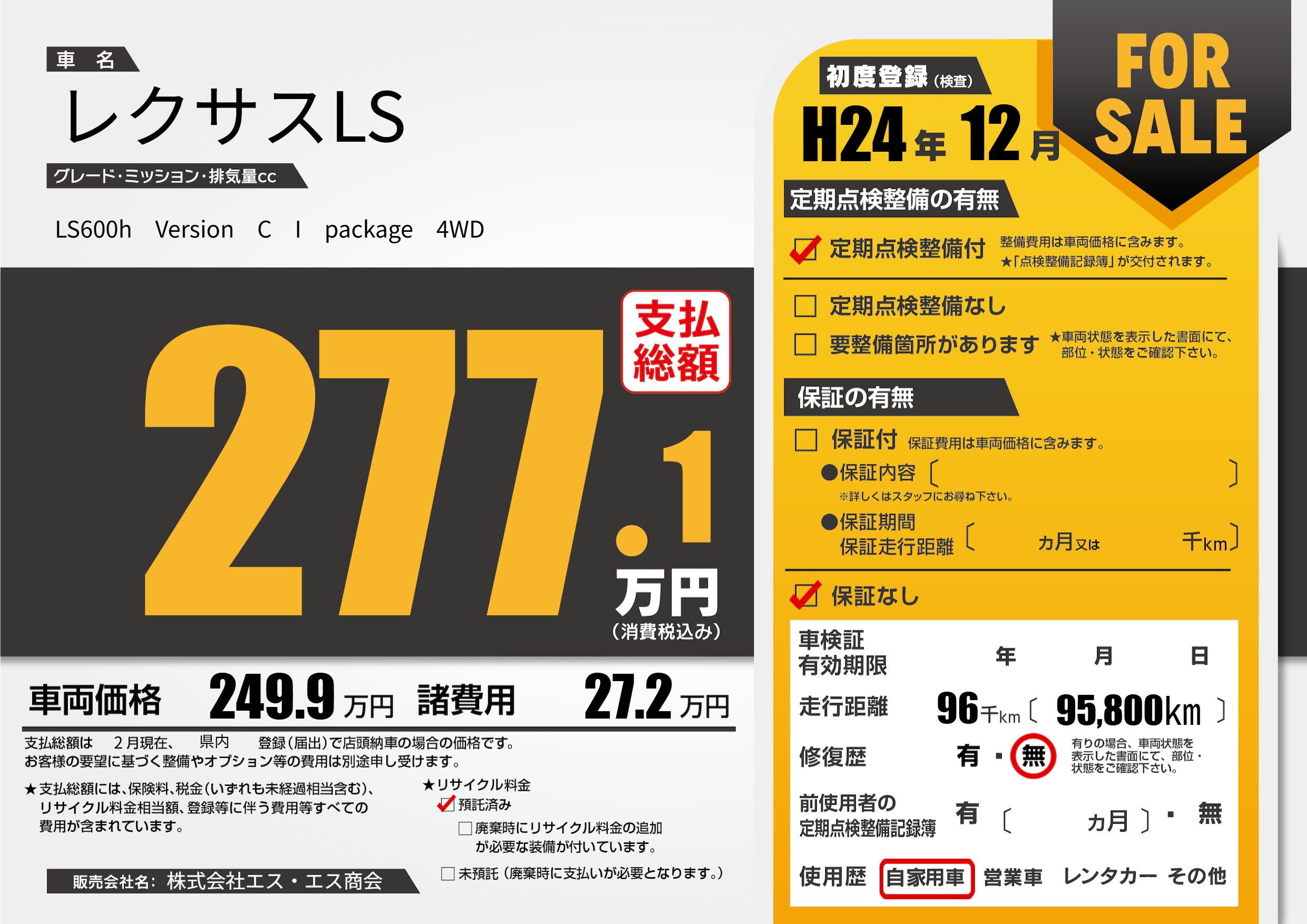 | 定期点検整備 | 定期点検整備あり | ||
