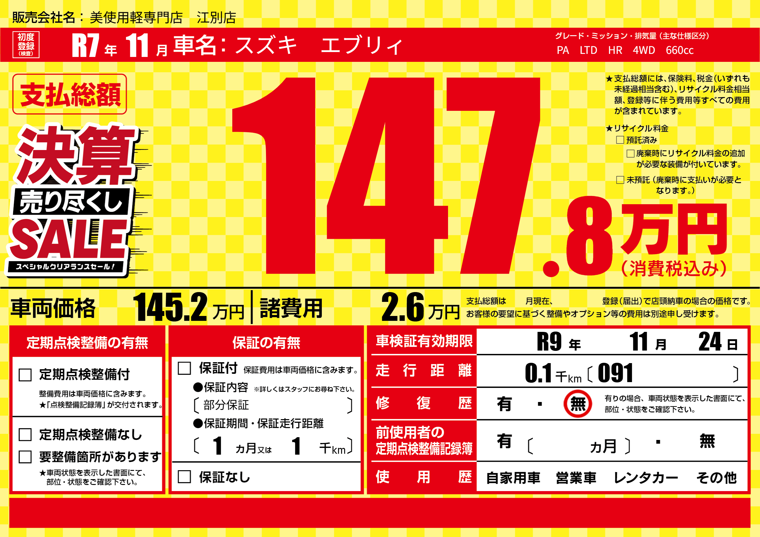 なし | 車検制限 | R9年11月24月 |
