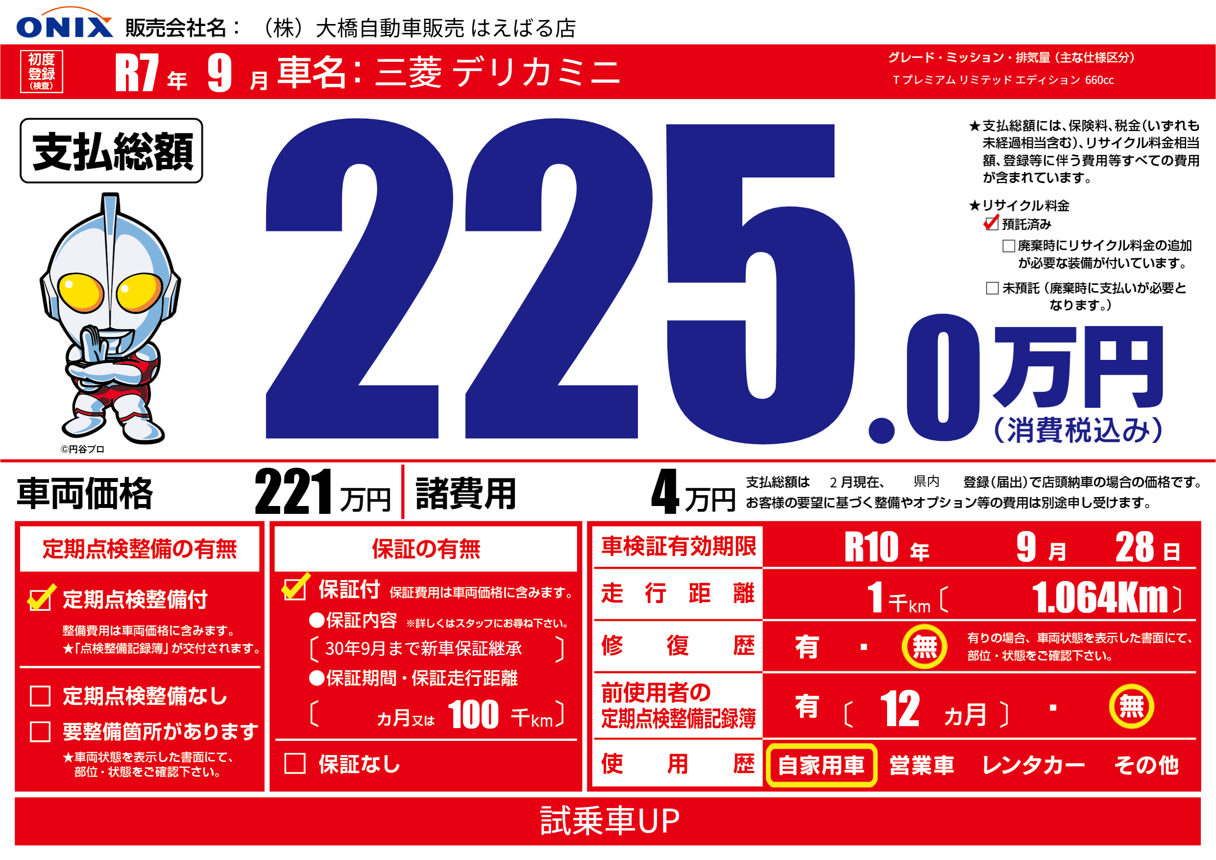 | 初年度登録 | R7年9月 | ||