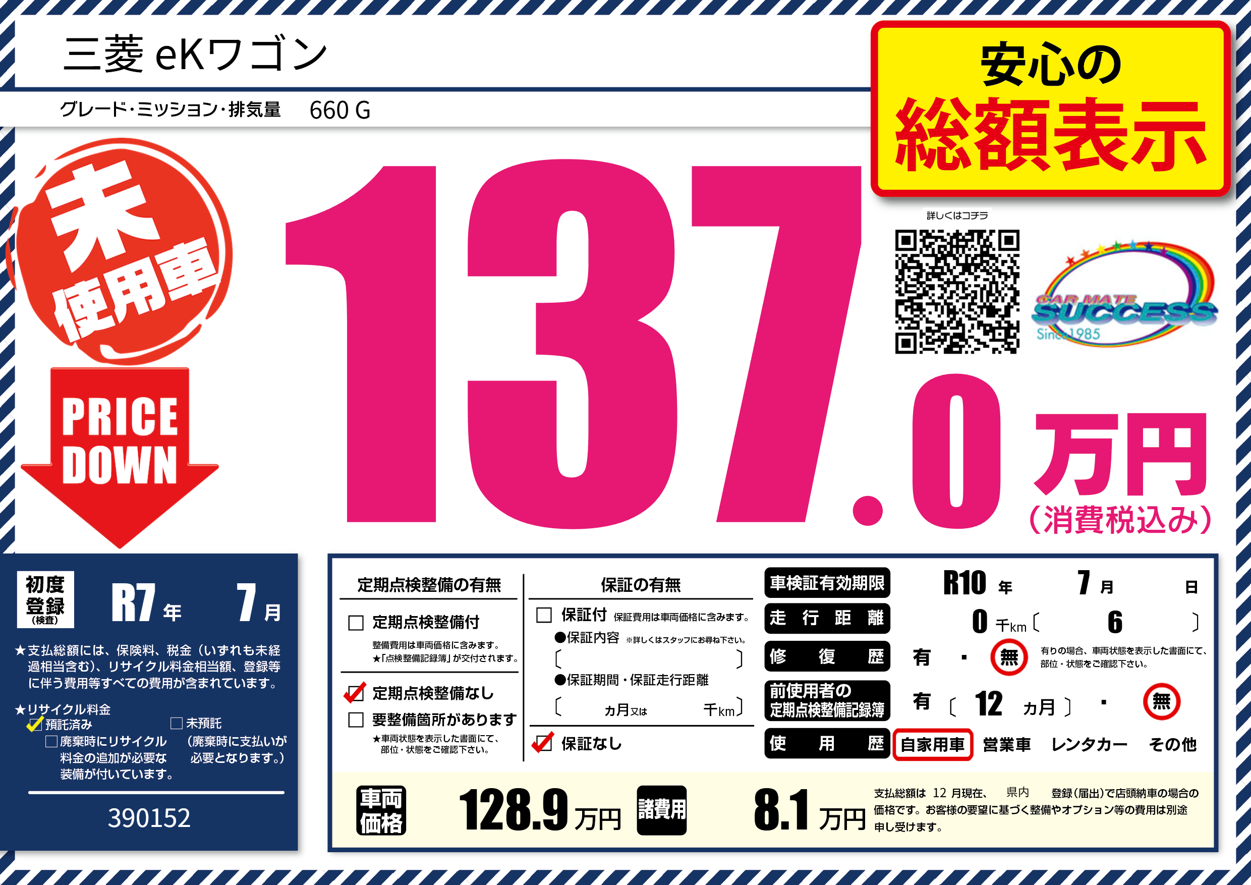 | 走行キロ | - | 初年度登録 | R7年7月 |