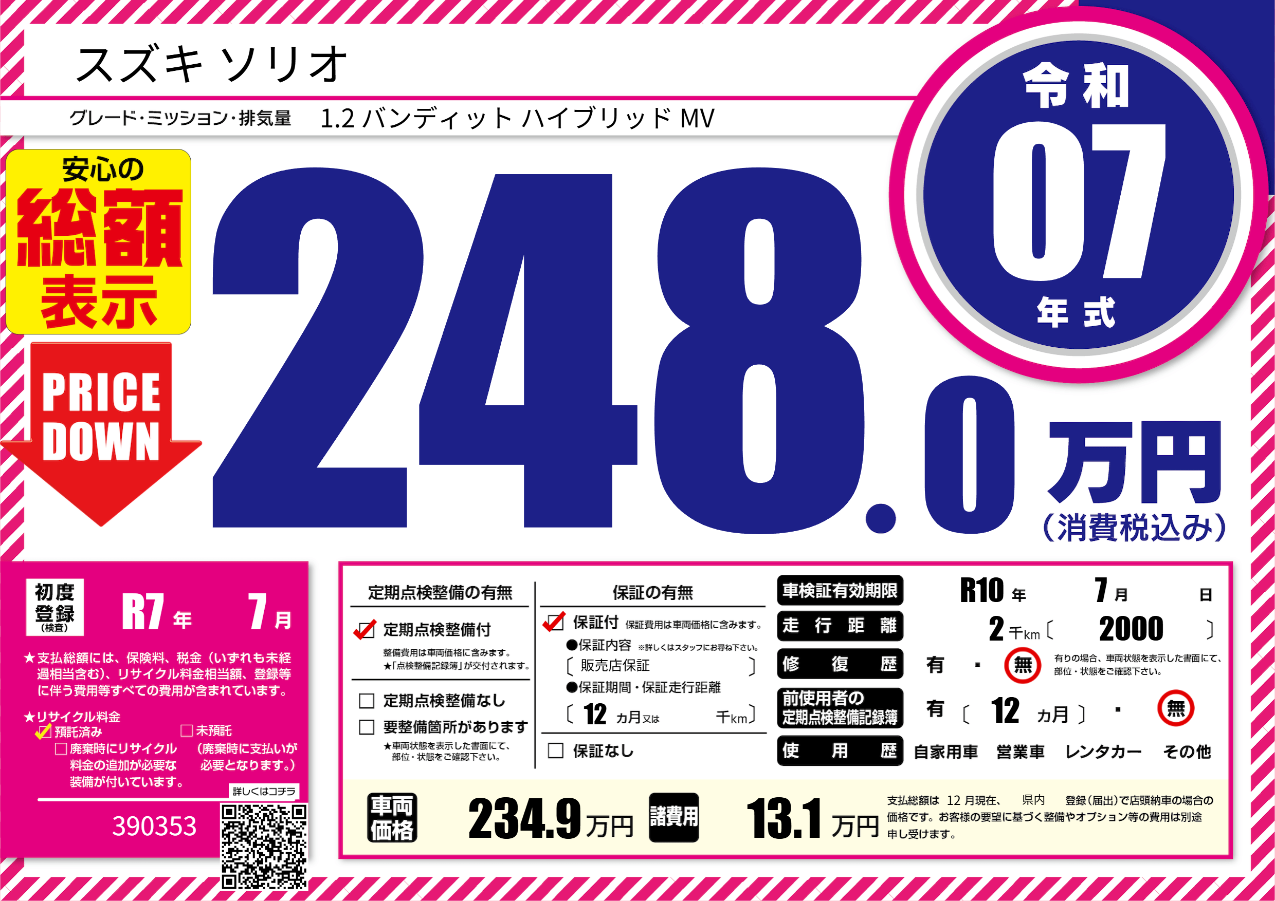 | 車検制限 | R10年 7月 - 日 | ||