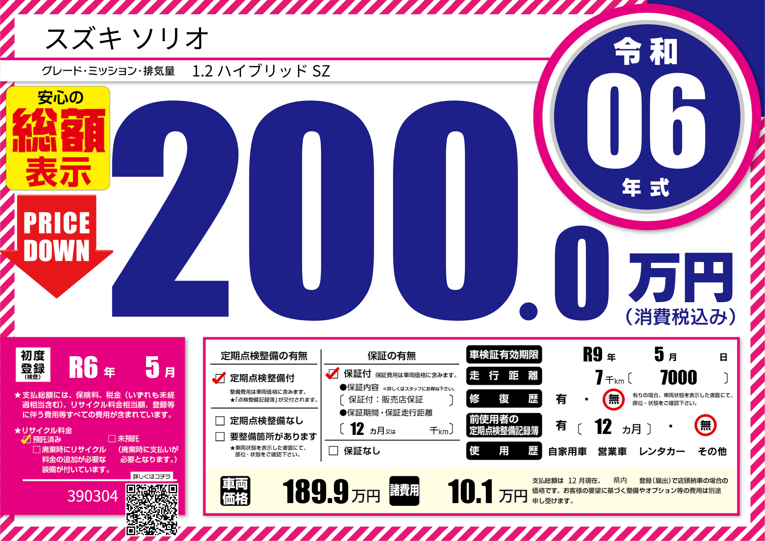 | 走行キロ | 0.7万km | 初年度登録 | R6年5月 |