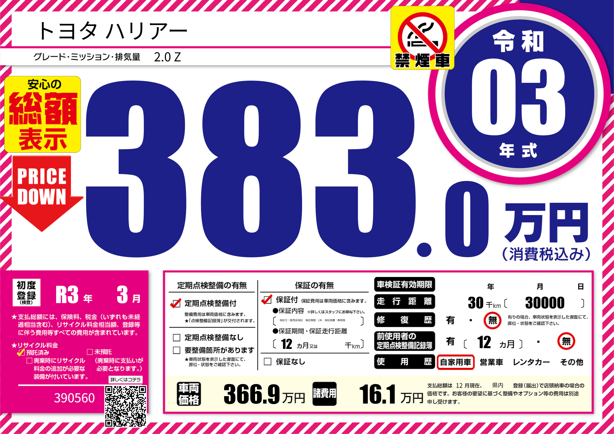 | 走行キロ | 3万km | 初年度登録 | R3年3月 |