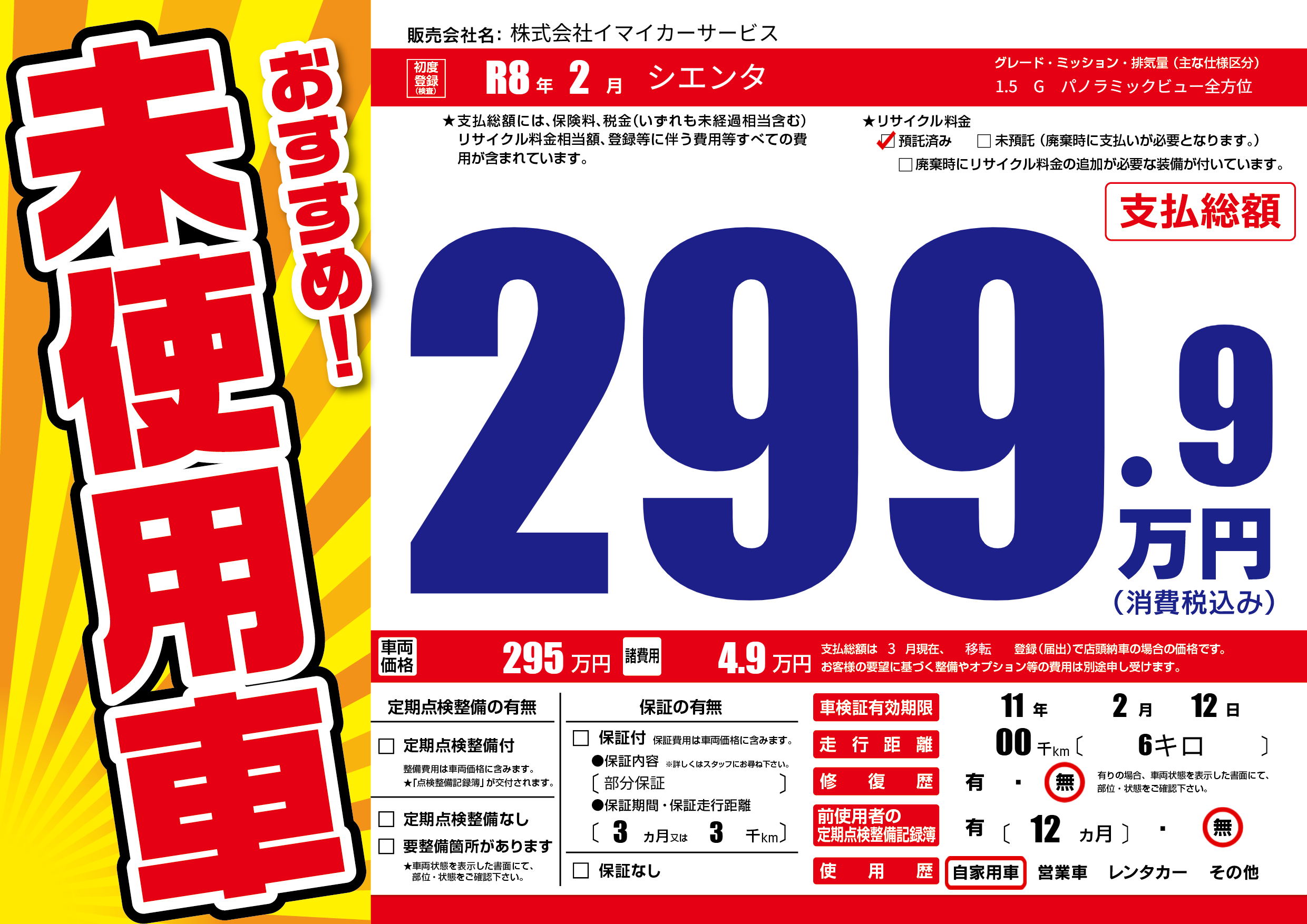 | 走行キロ | - | 初年度登録 | R8年2月 |