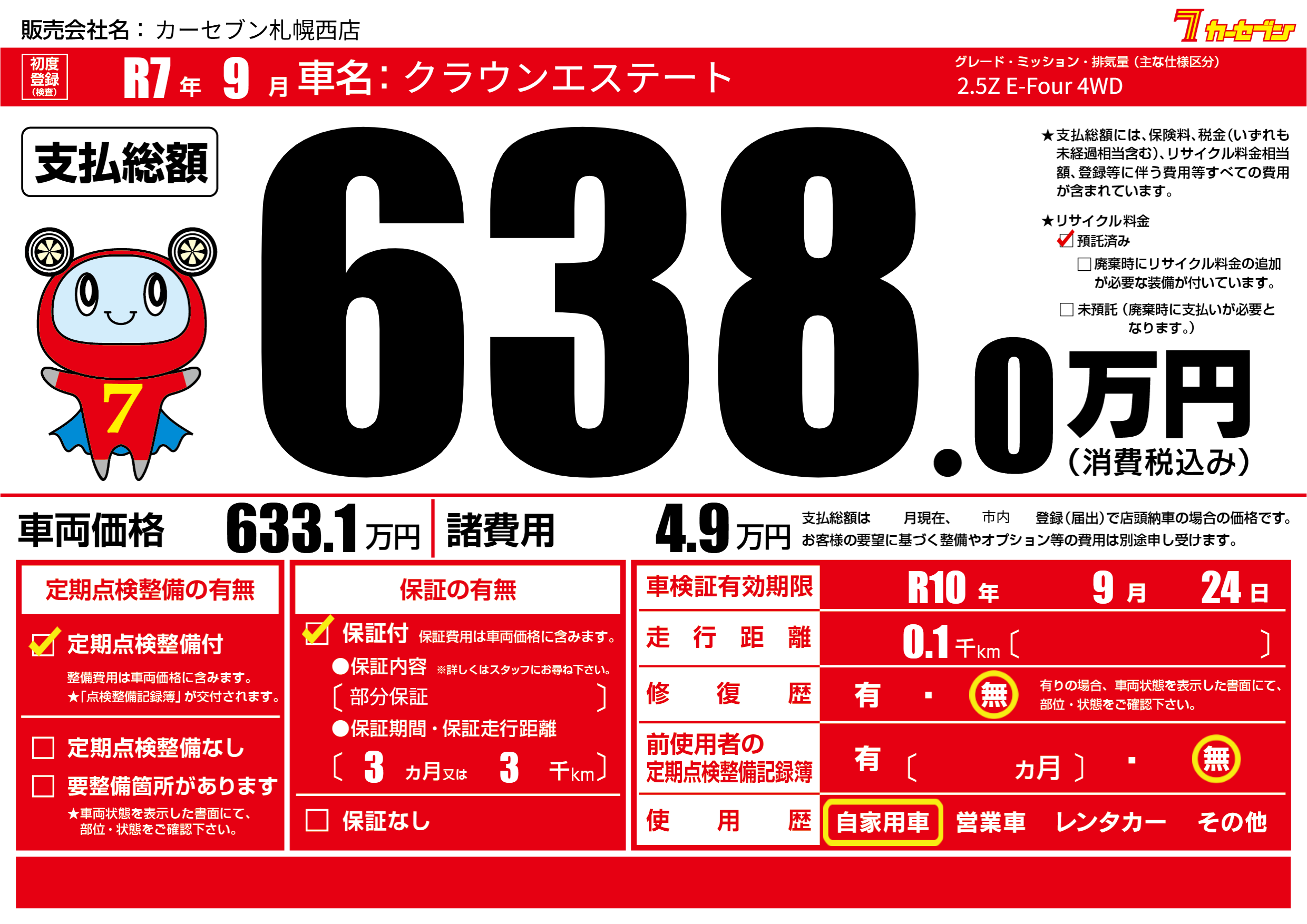 なし | 車検制限 | R10年9月24月 |