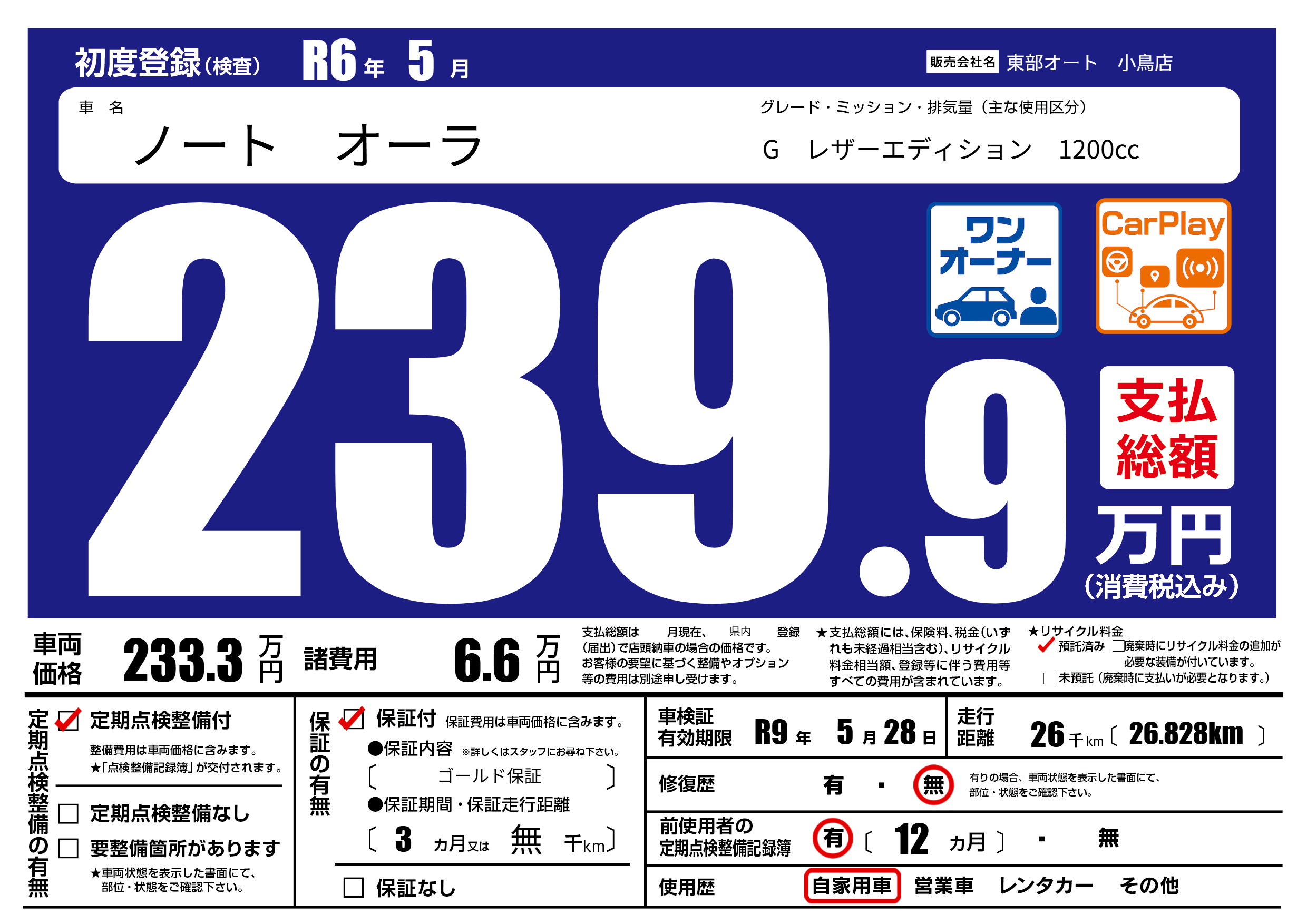 なし | 車検制限 | R9年5月28月 |