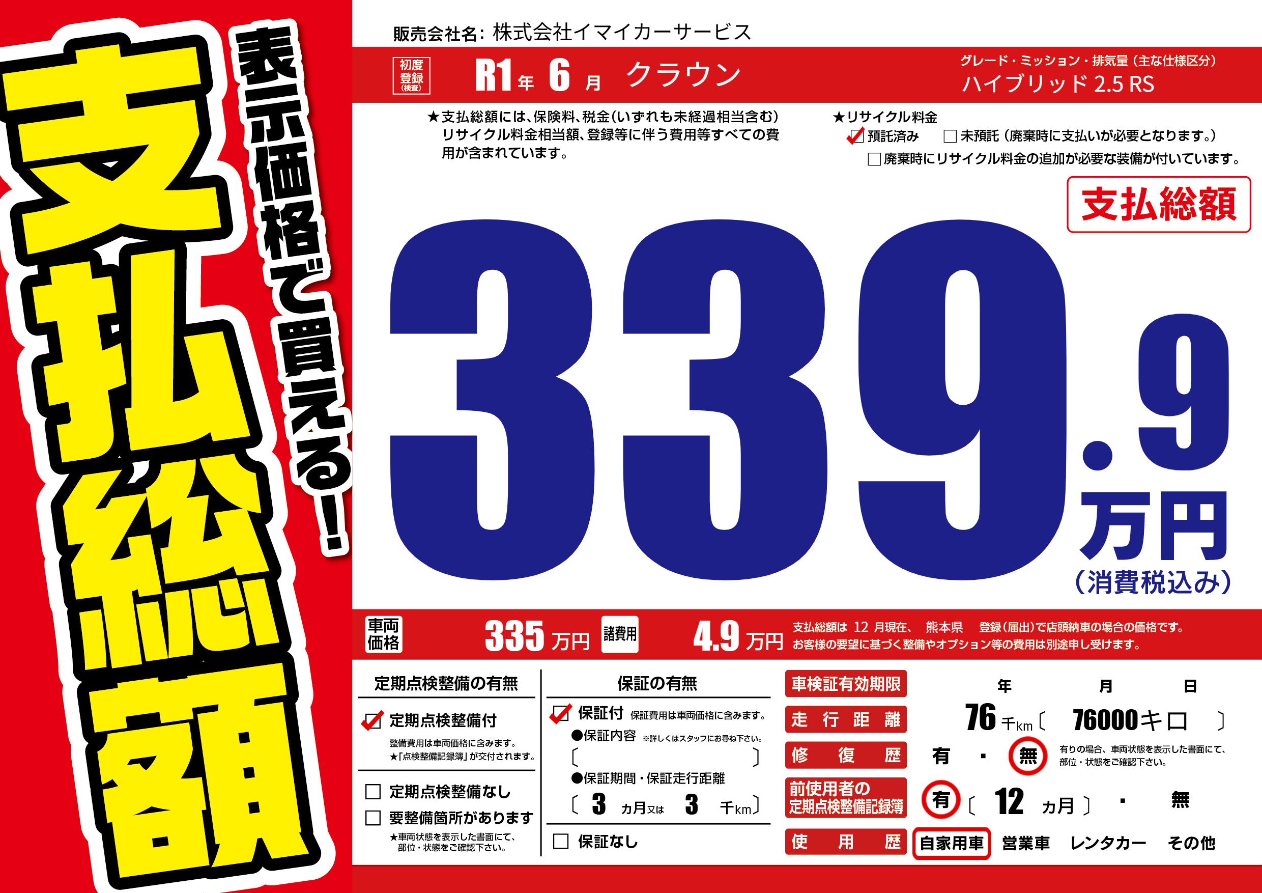 | 走行キロ | 7.6万km | ||