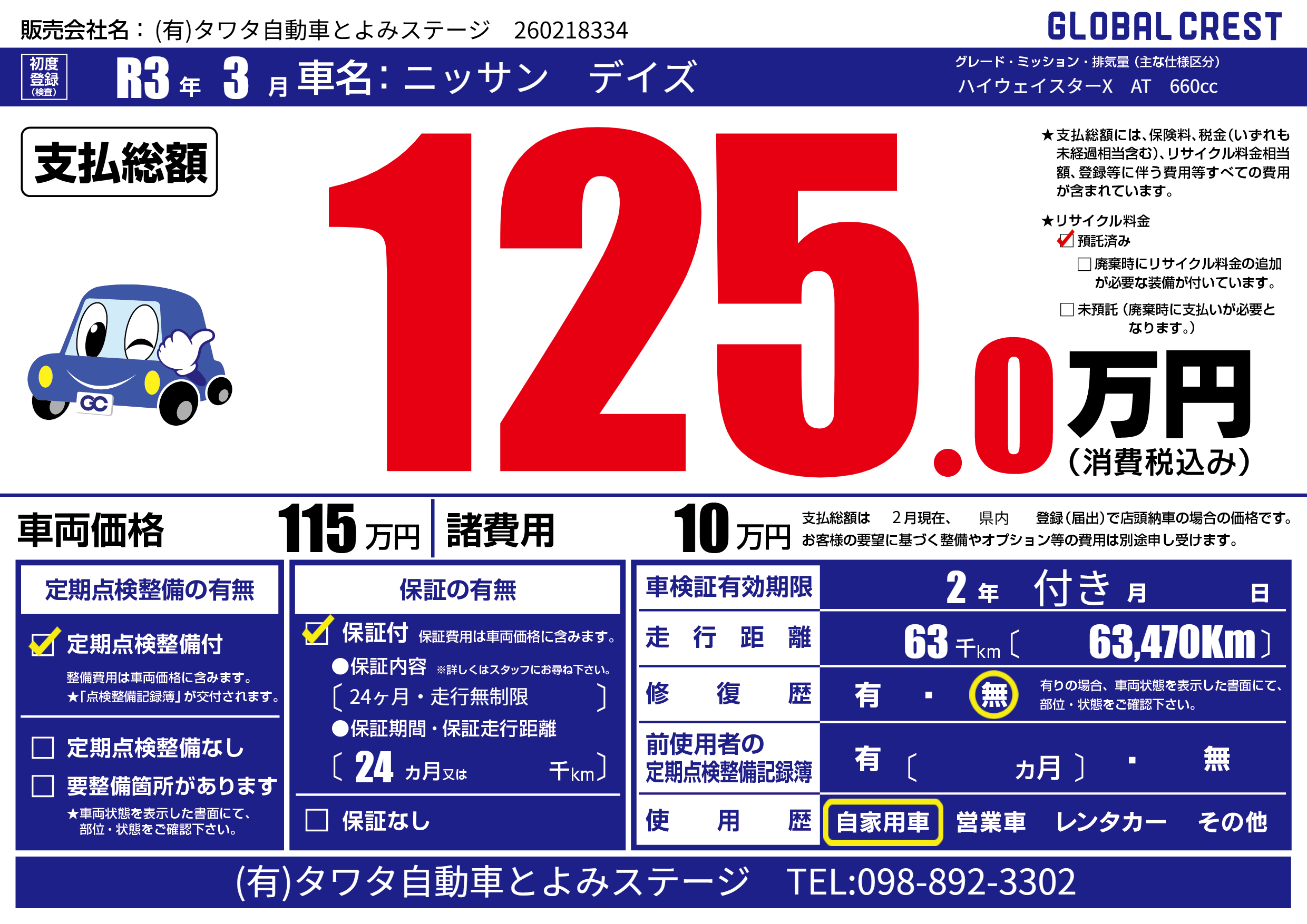 | 定期点検整備 | 定期点検整備あり | ||