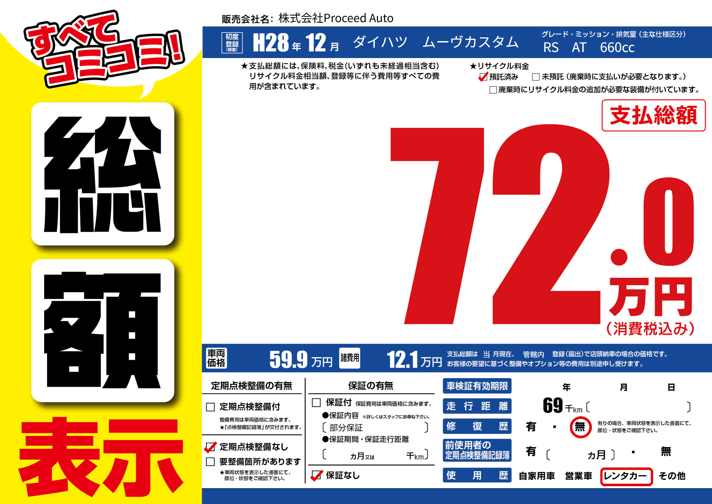 | 定期点検整備 | 定期点検整備なし | ||