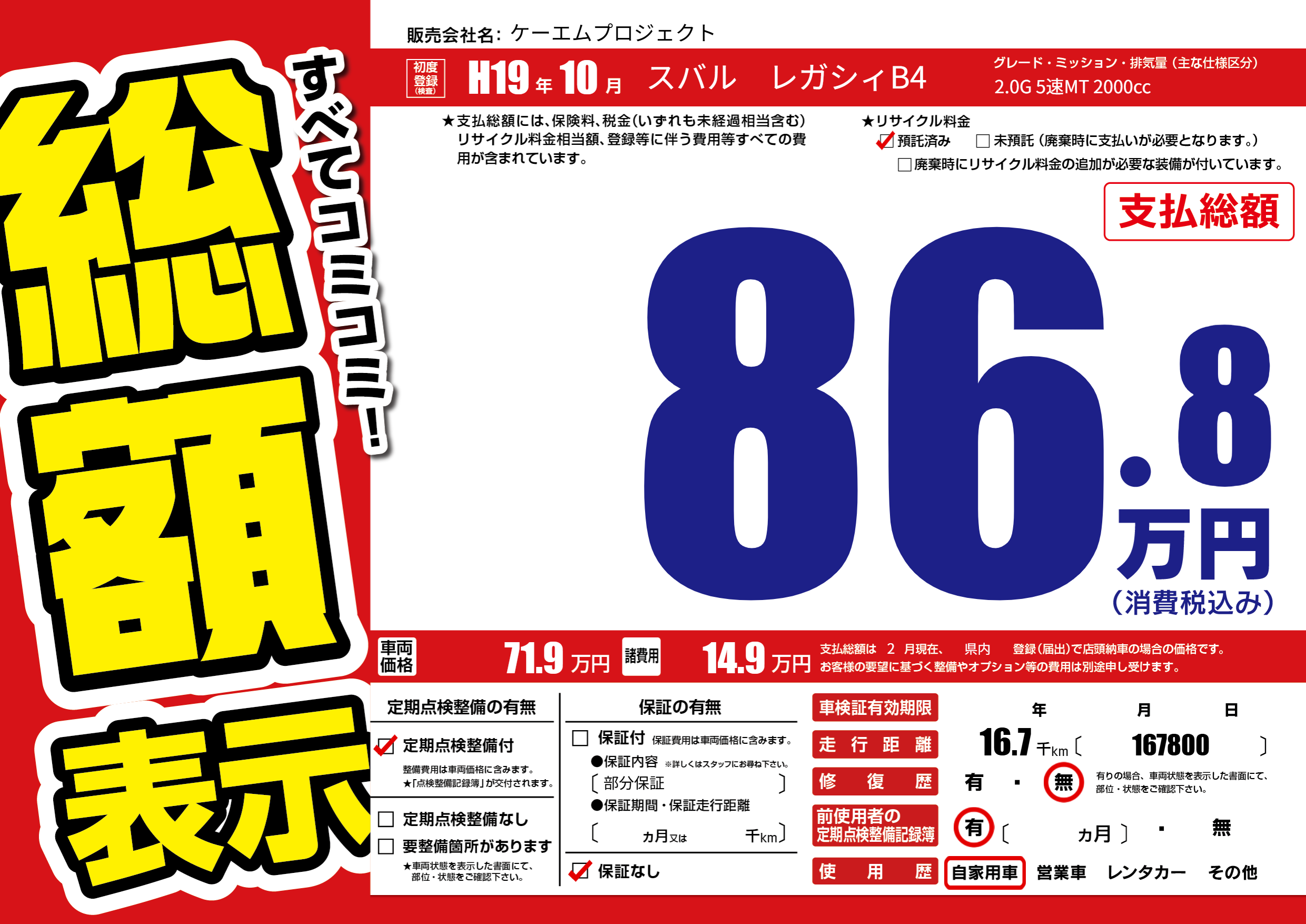 | 定期点検整備 | 定期点検整備あり | ||