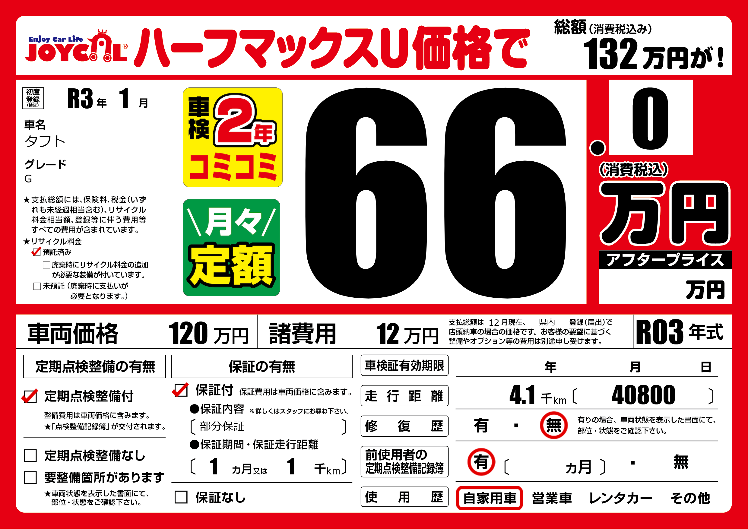 | 定期点検整備 | 定期点検整備あり | ||