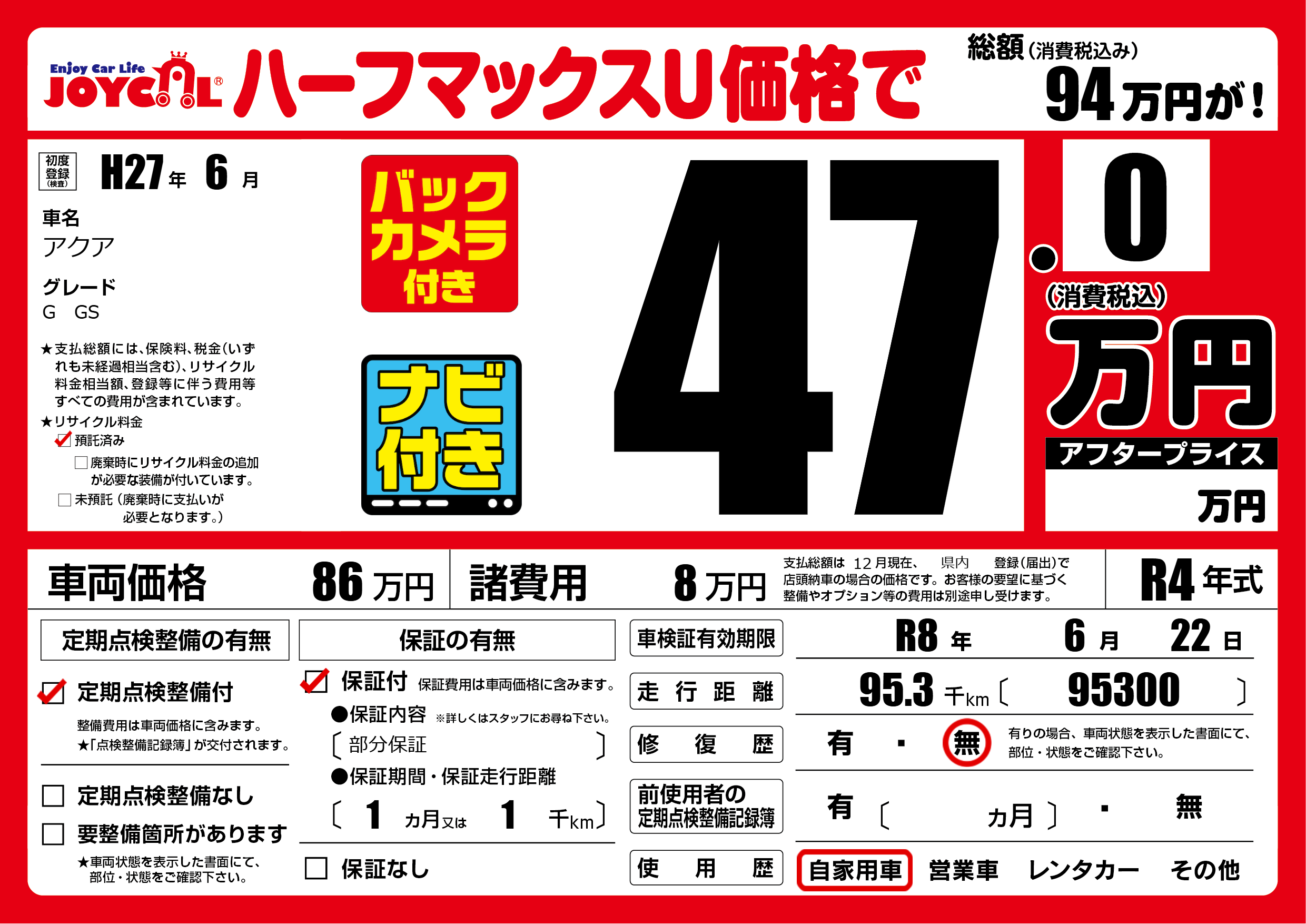 なし | 車検制限 | R8年6月22月 |