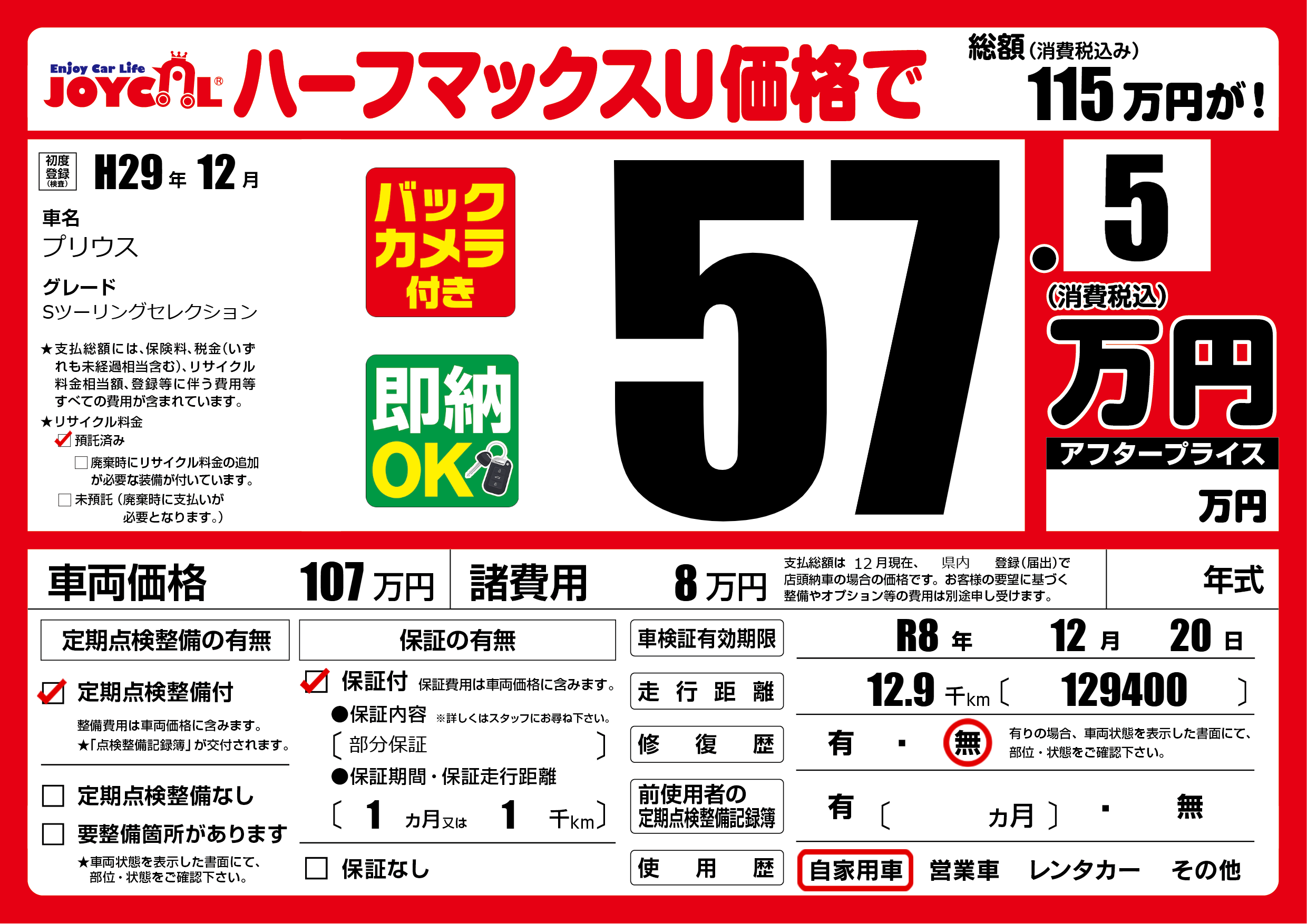 | 車名 | プリウス | グレード ミッション 排気量 |