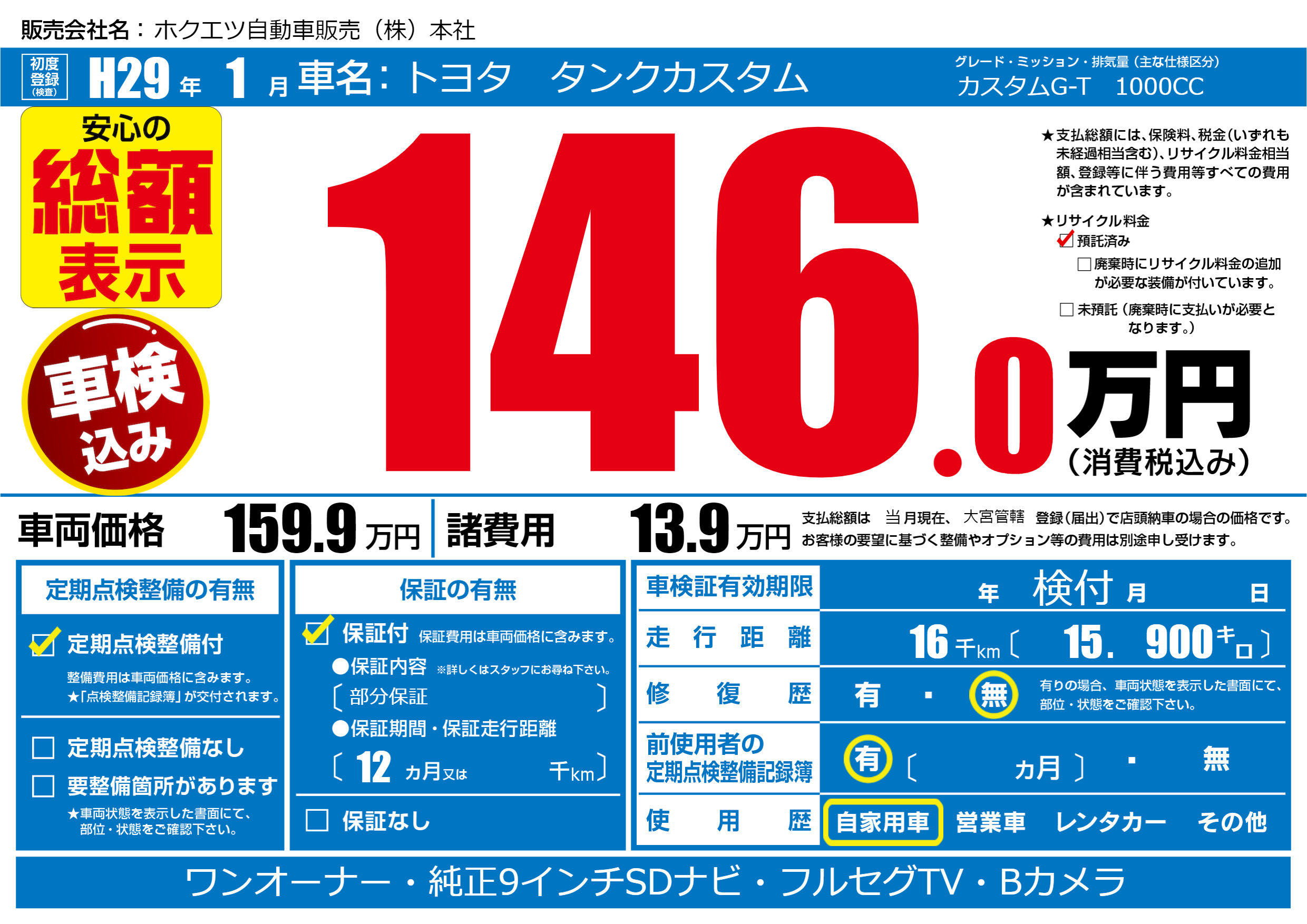 | 定期点検整備 | 定期点検整備あり | ||