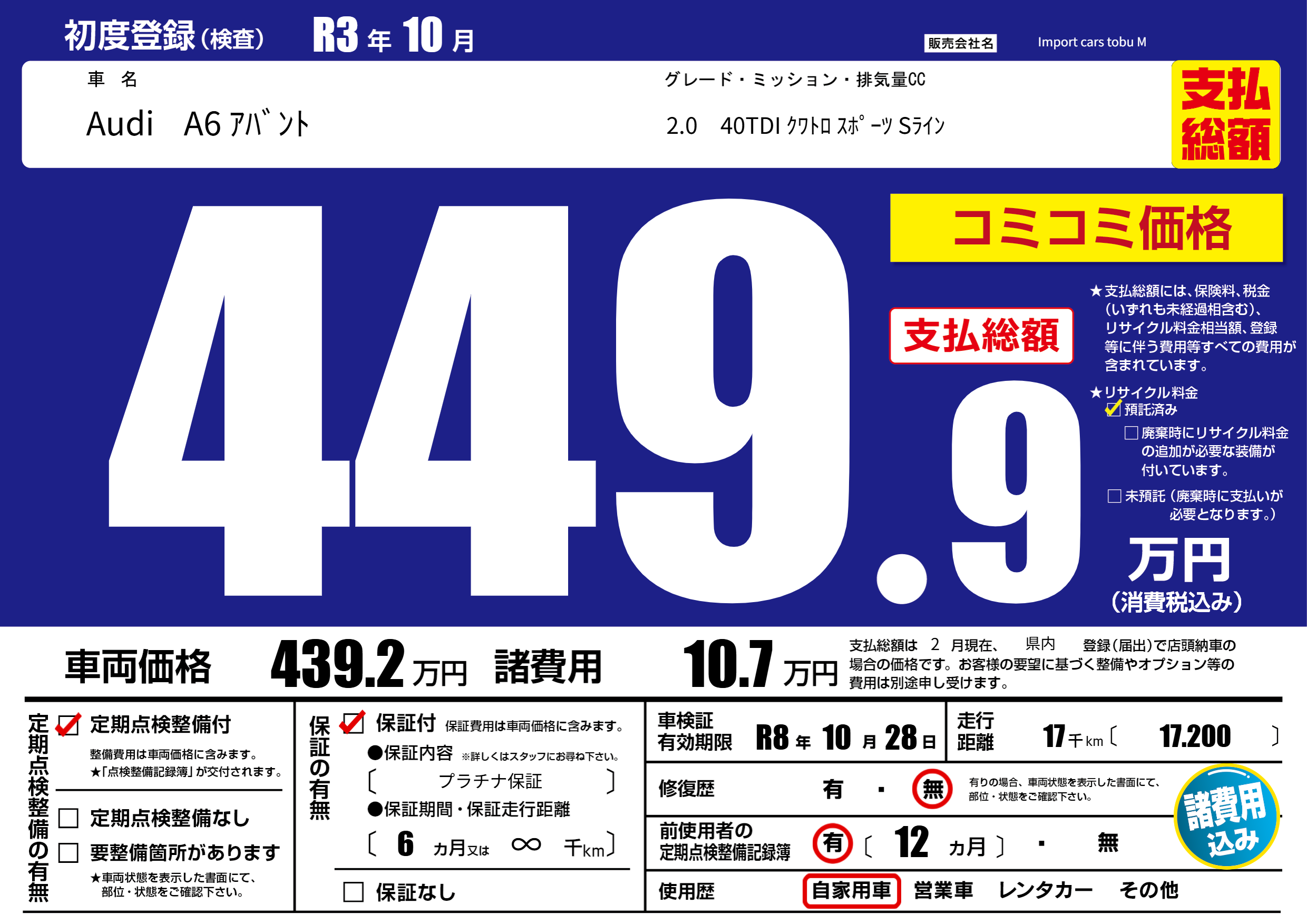 | 車検制限 | R8年 10月 28日 | ||