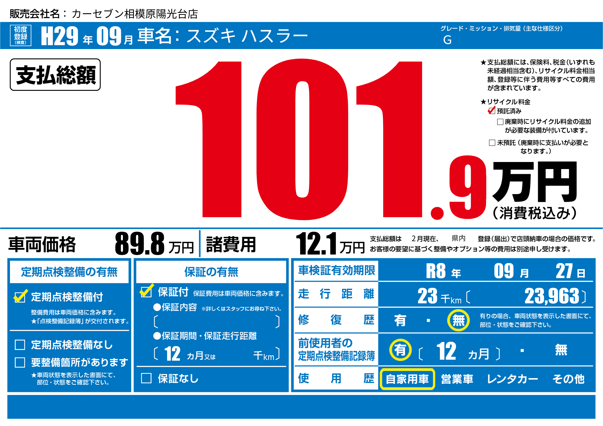 なし | 車検制限 | R8年09月27月 |