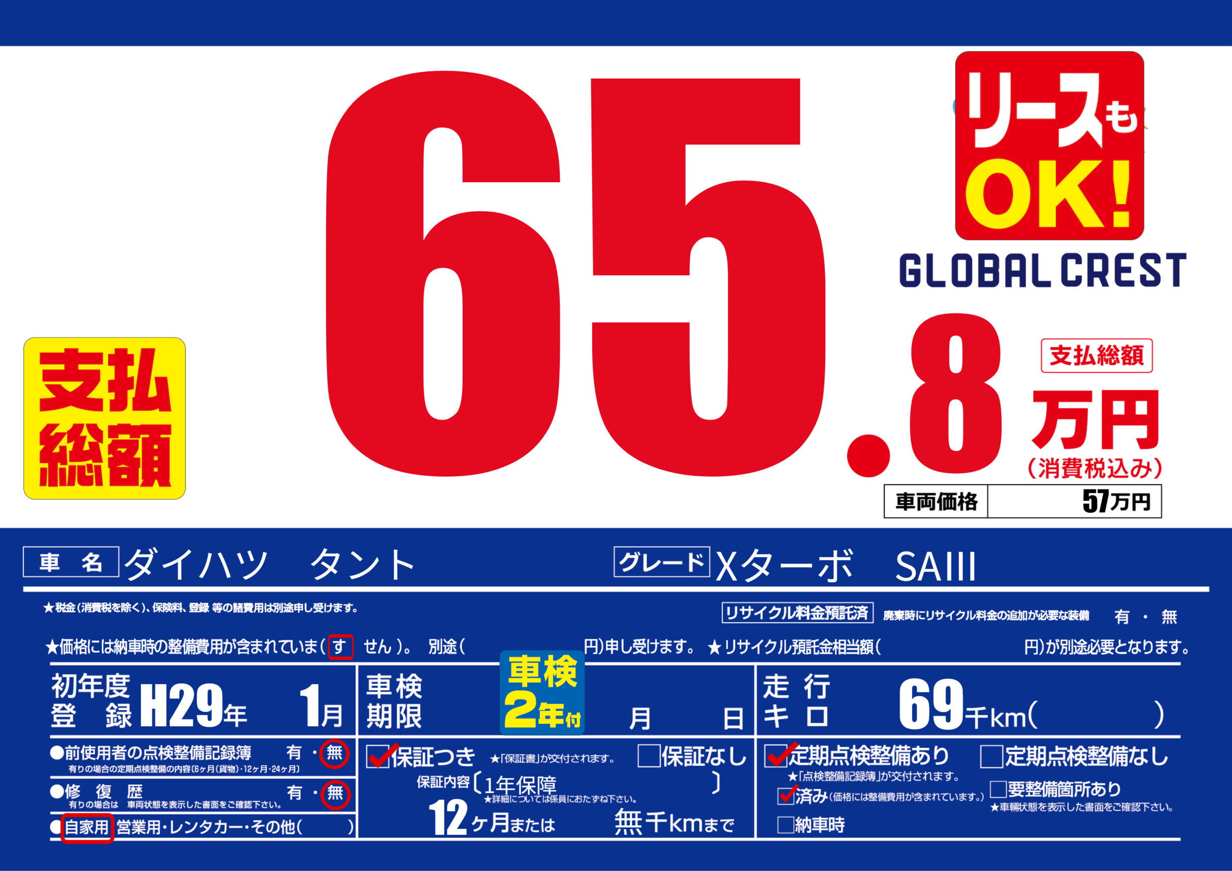 | 定期点検整備 | 定期点検整備あり 定期点検整備済み | ||