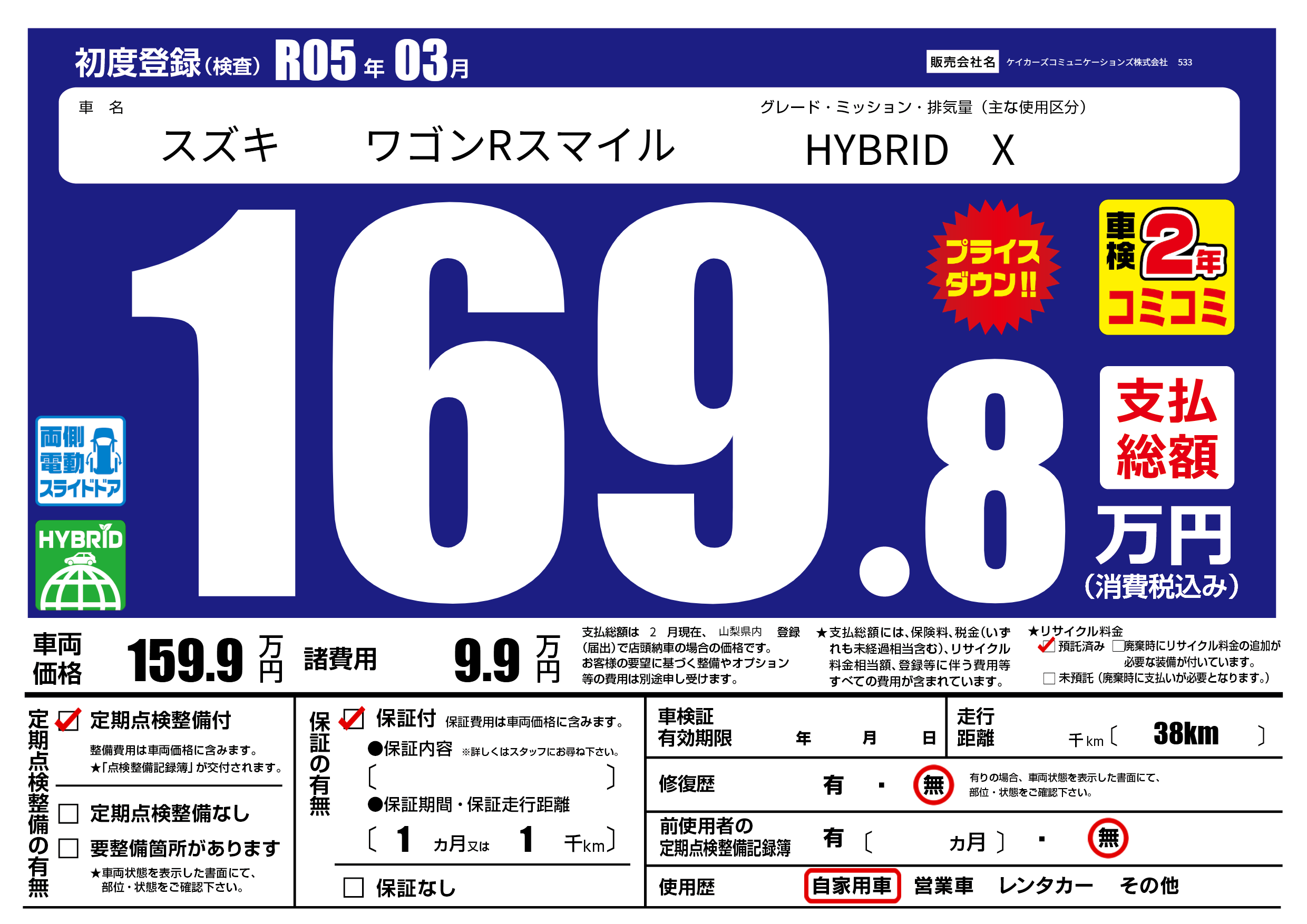 | 定期点検整備 | 定期点検整備あり | ||