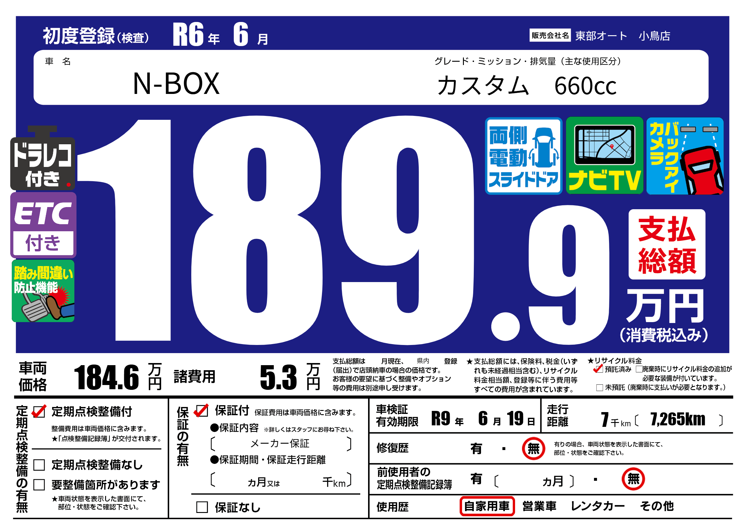 | 車検制限 | R9年 6月 19日 | ||