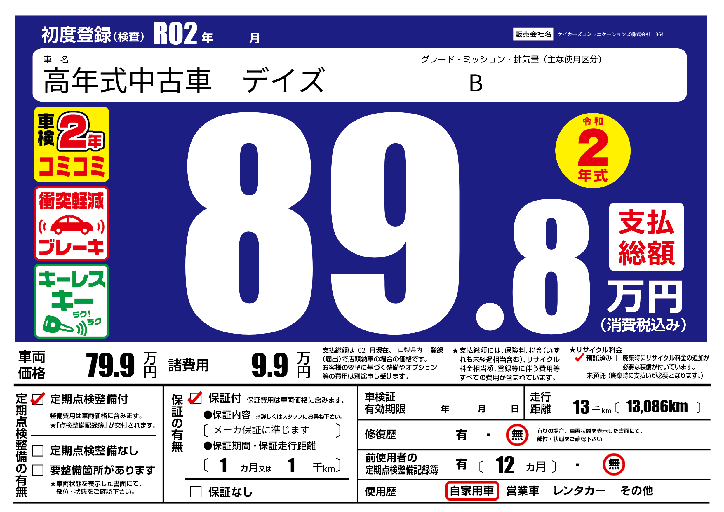 | 定期点検整備 | 定期点検整備あり | ||