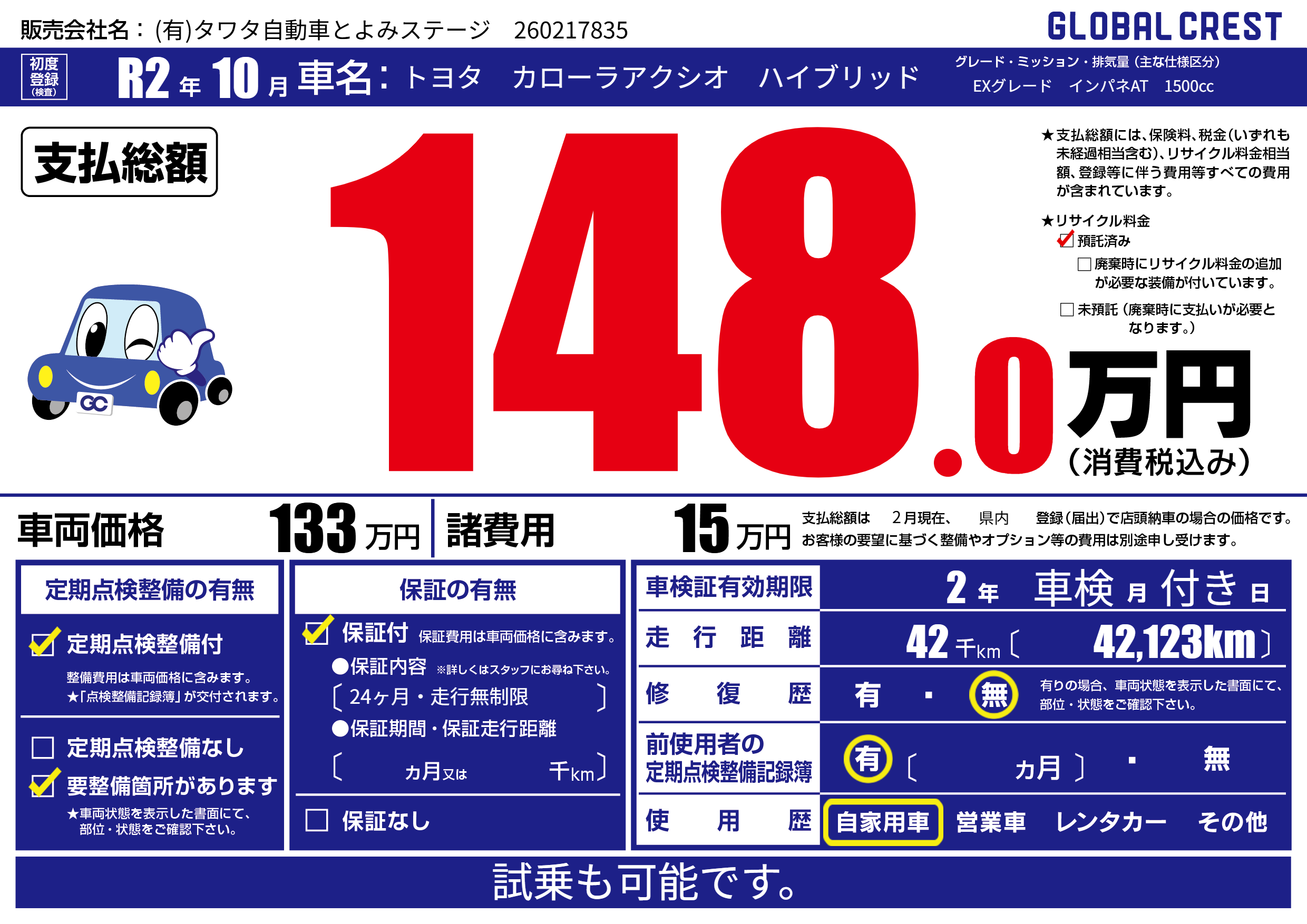| 走行キロ | 4.2万km | ||